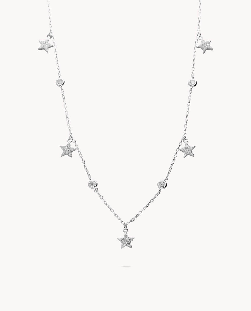 Collar estrellas mini deseos brillantes de plata de ley 925 bañada en rodio