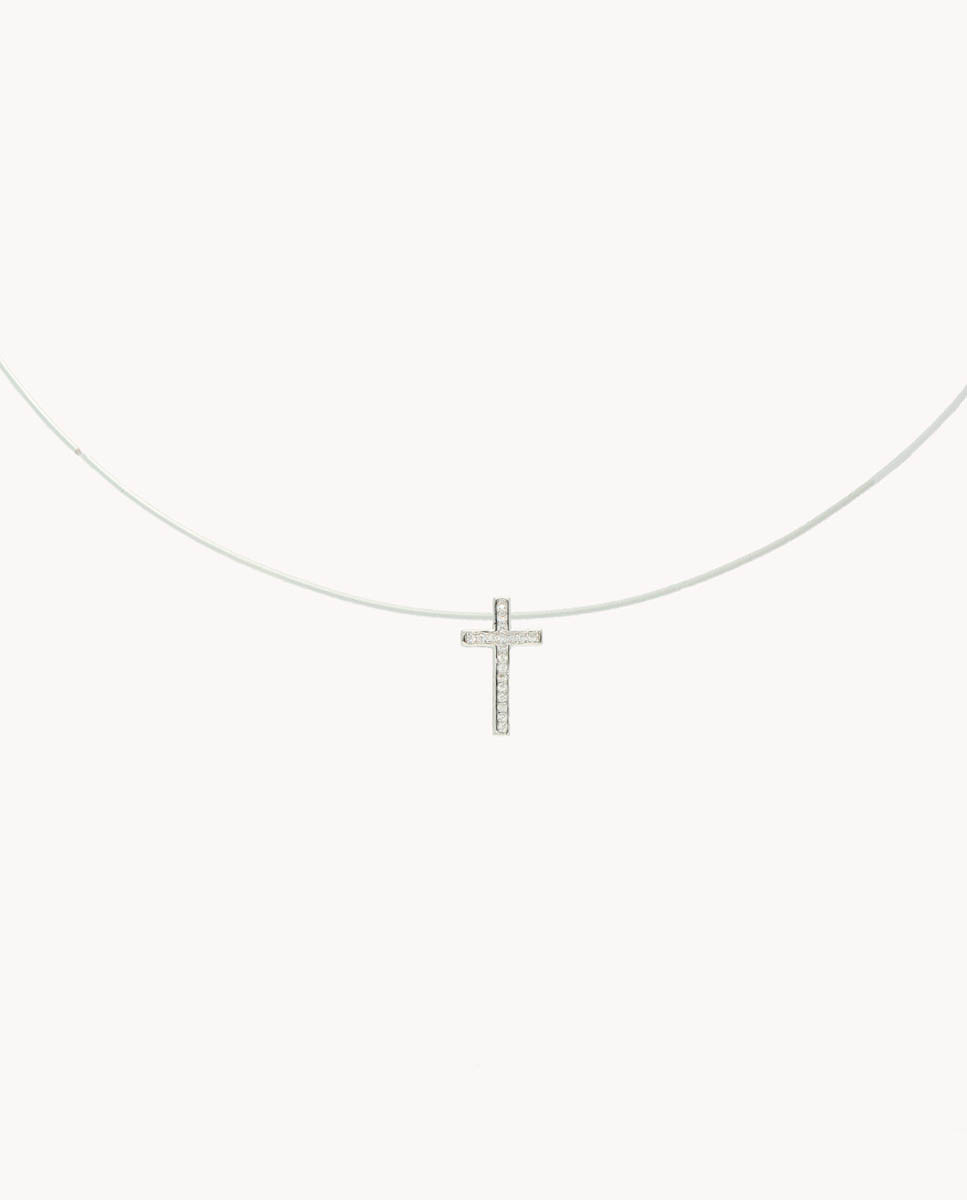 Collar invisible con cruz brillante de plata de ley 925 bañada en rodio
