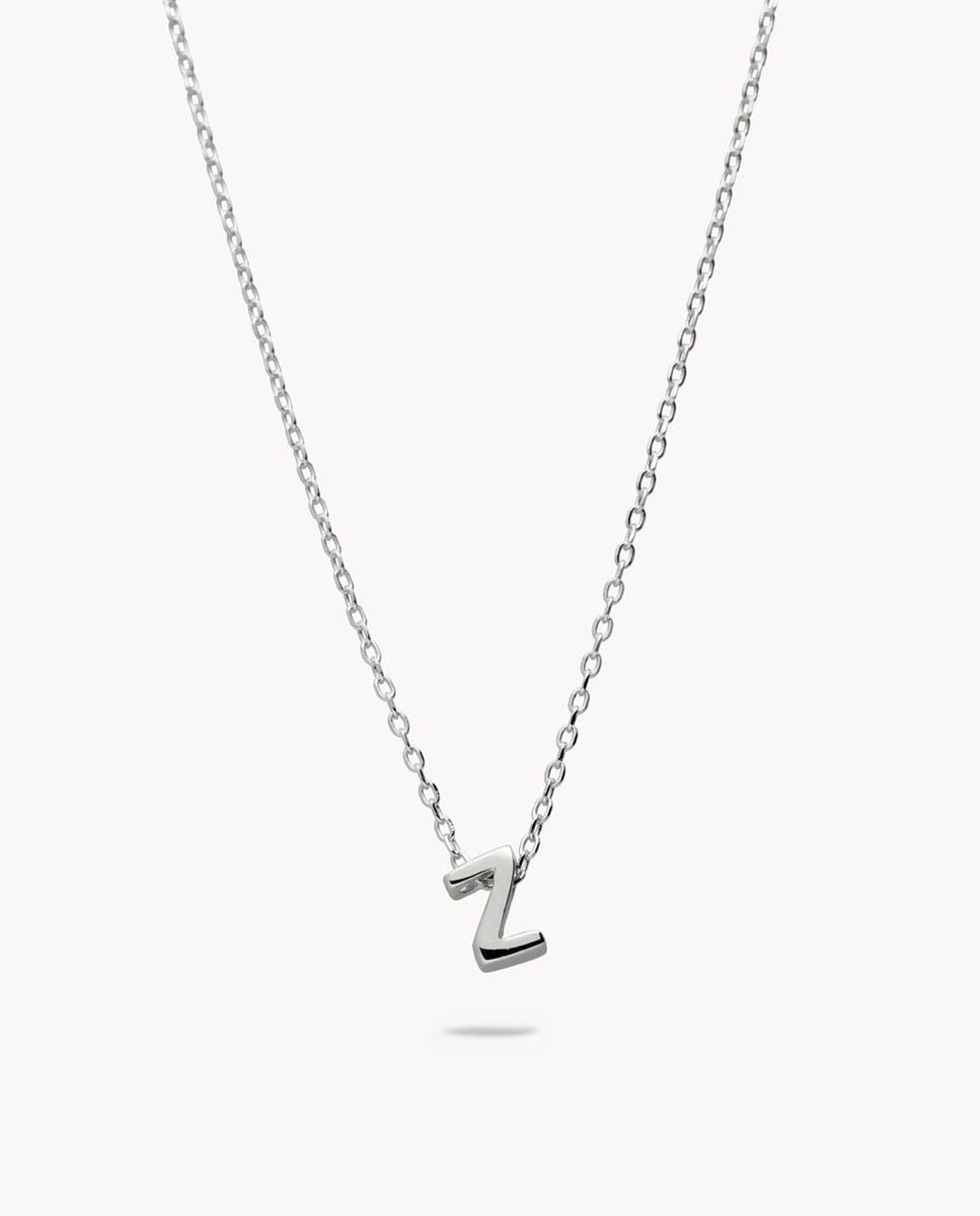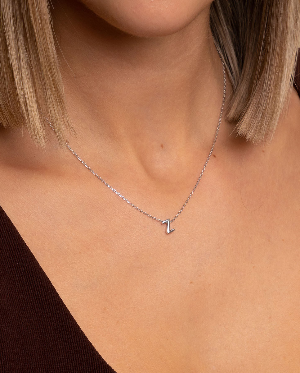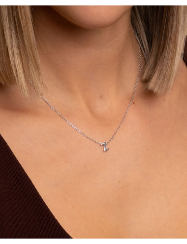 Collar de plata de ley 925 bañada en rodio con inicial Z de 7 mm de alto y 3 mm de grosor, cadena de 40 cms más 5 cms de alargador y cierre de mosquetón.