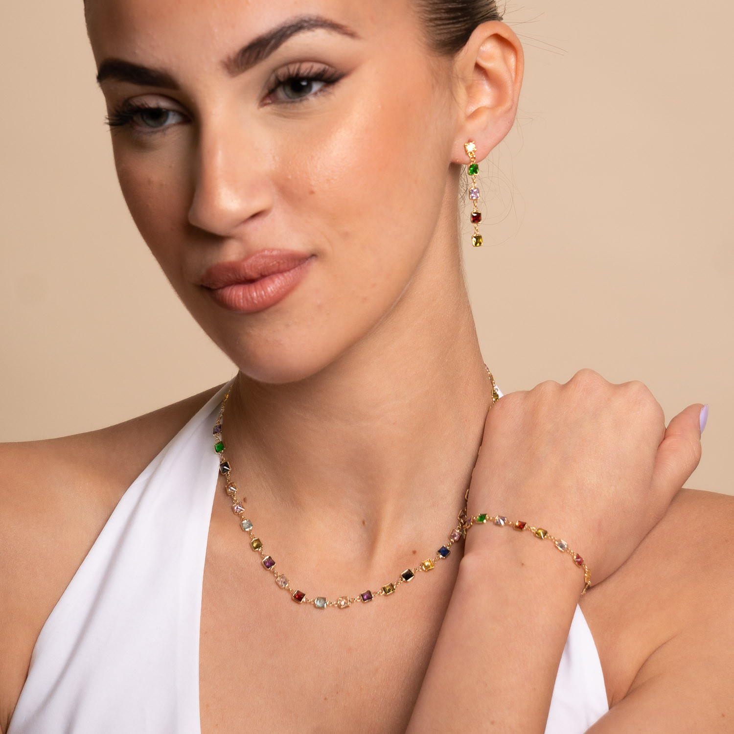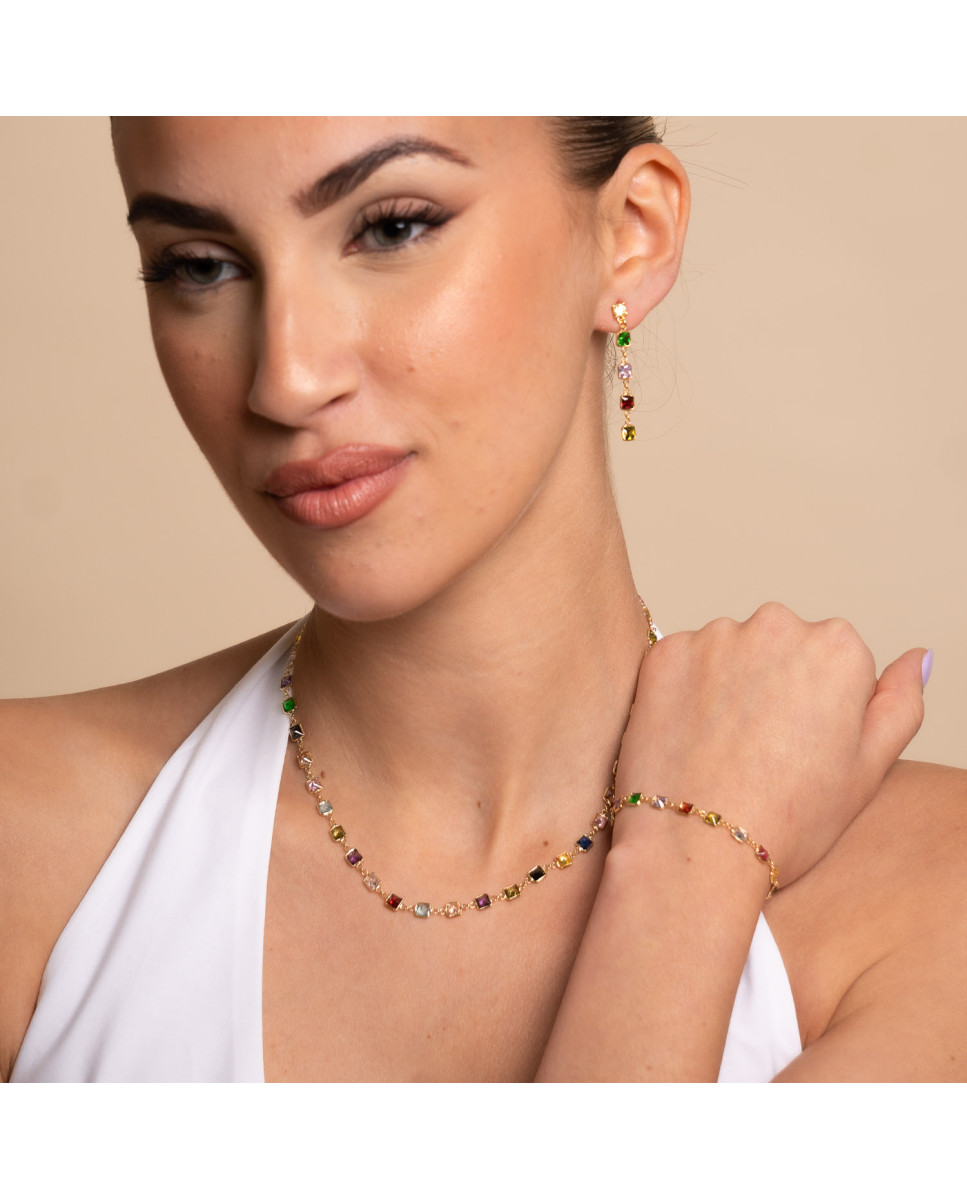 COLLAR OK SILVER LLUVIA DE COLORES DE PLATA DE LEY 925 BAÑADA EN ORO
