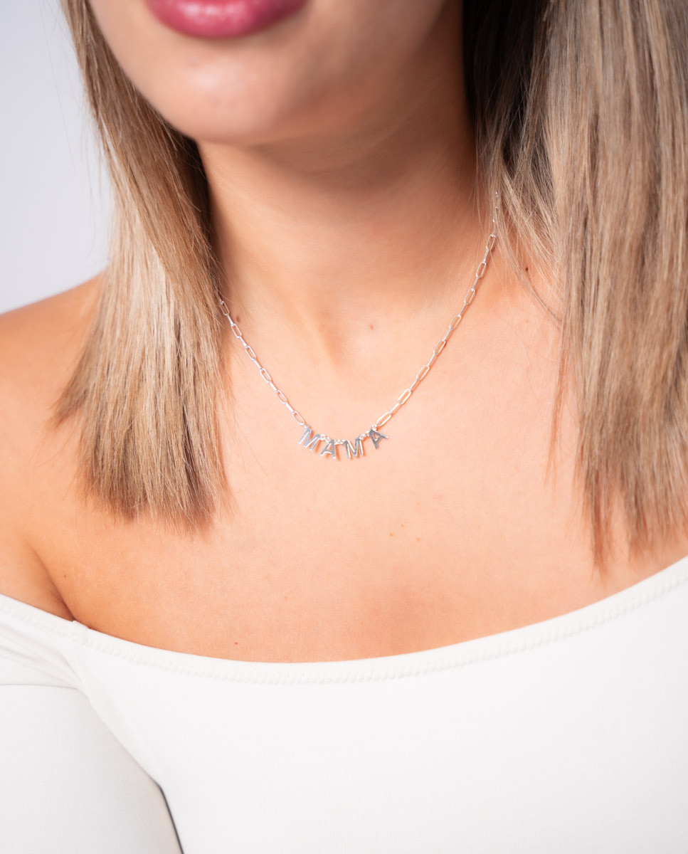 Collar mamá letras sueltas en eslabones de plata de ley 925