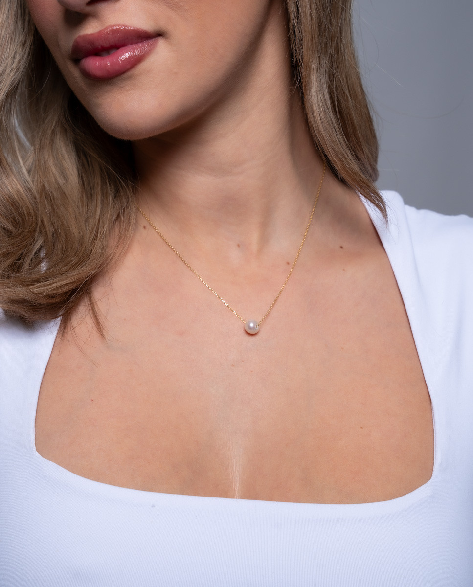 Collar perla centro de plata de ley 925 bañada en oro