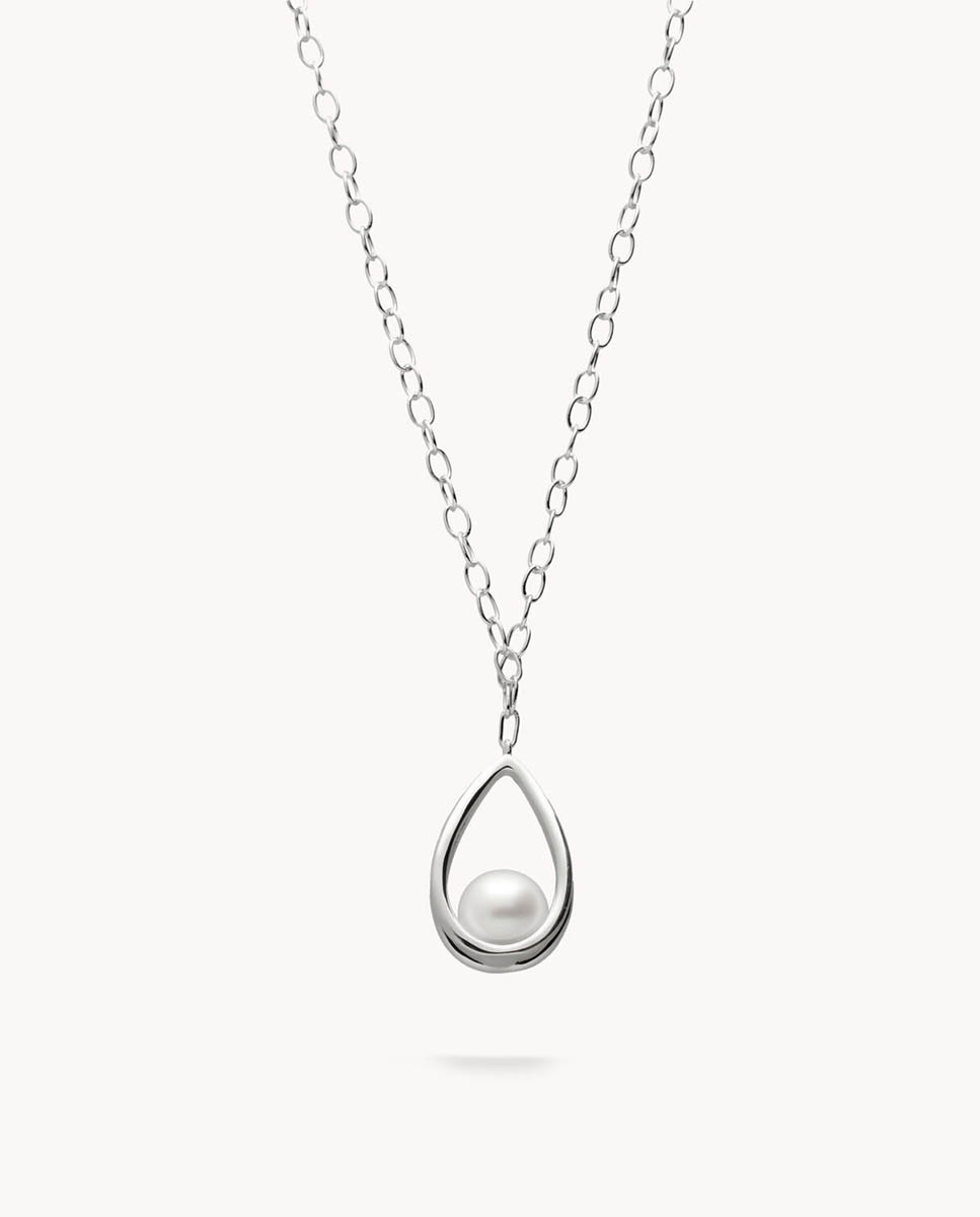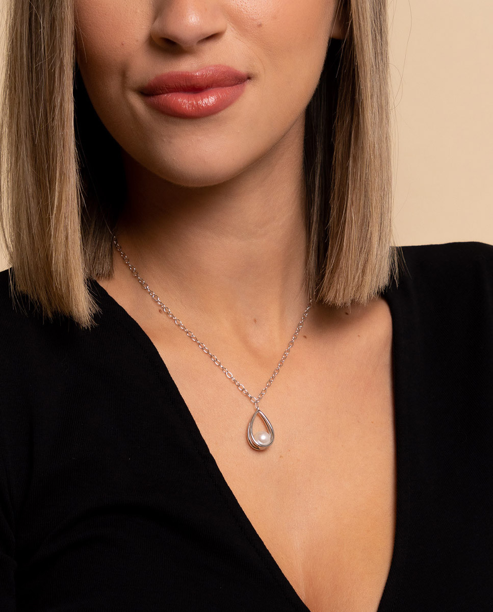 Collar perla en lágrima de plata de ley 925 bañada en rodio
