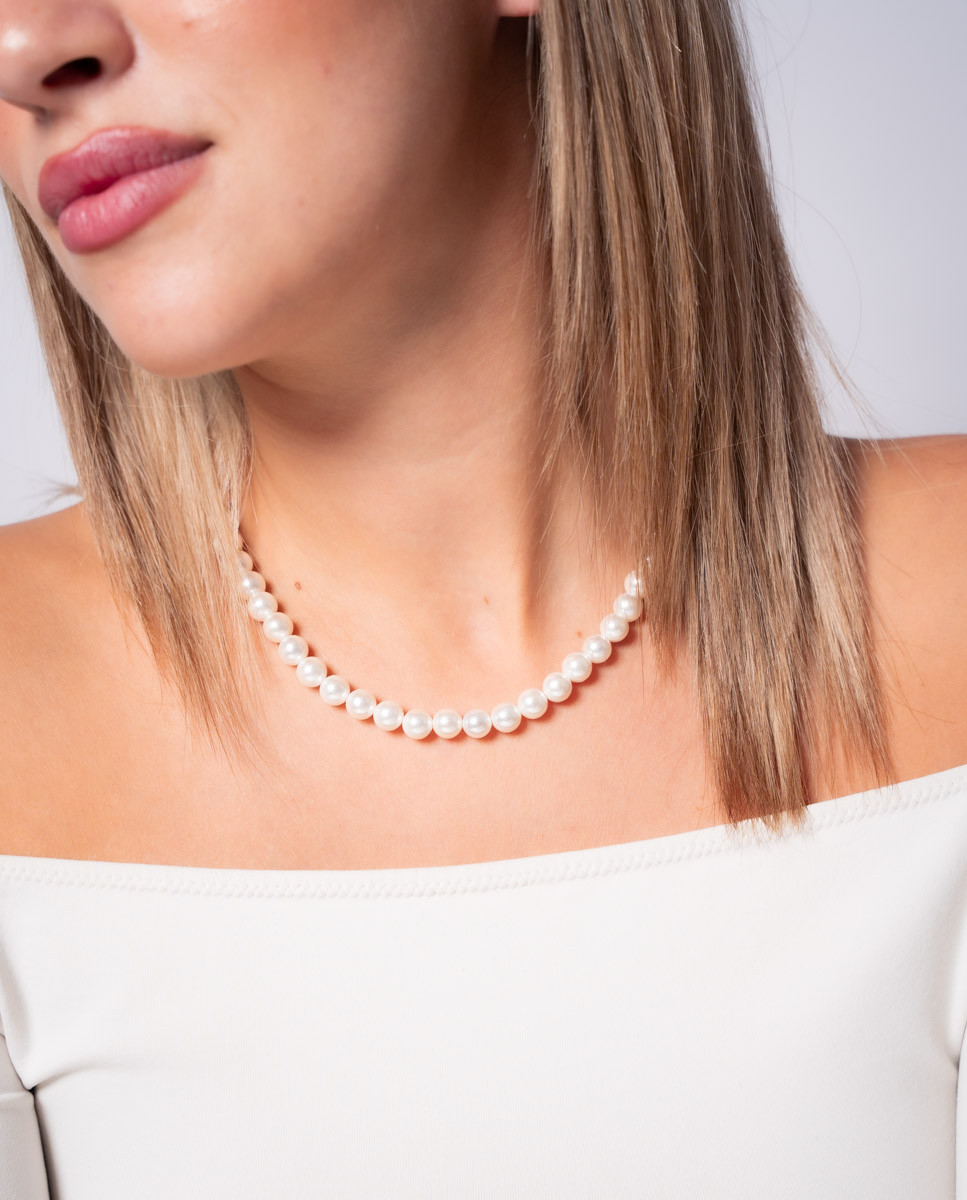 Collar perlas clásicas 8mm de plata de ley 925 bañada en rodio