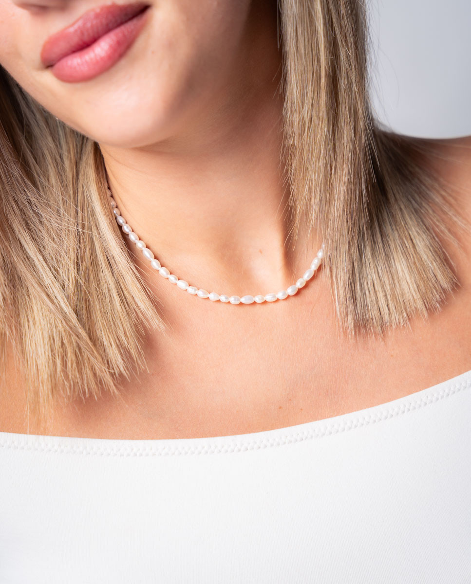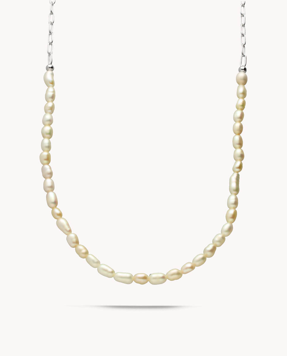 Collar perlas cultivadas mix cadena de plata de ley 925 bañada en rodio