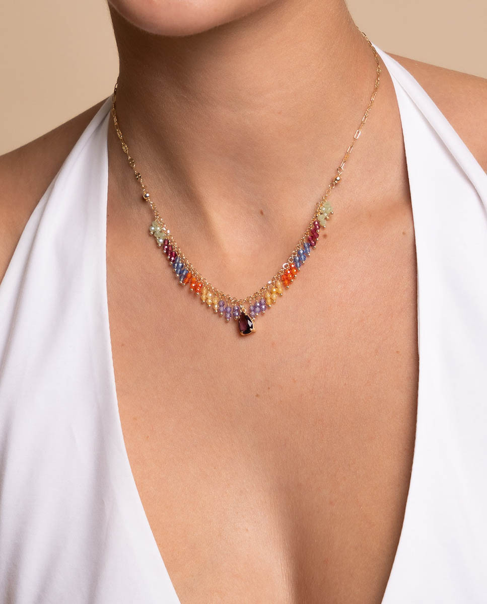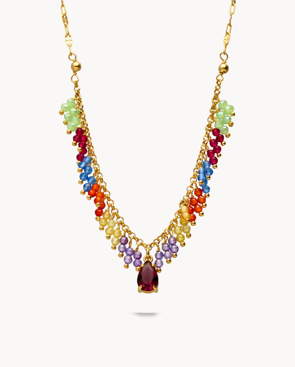 Collar piedras carnaval de plata de ley 925 bañada en oro