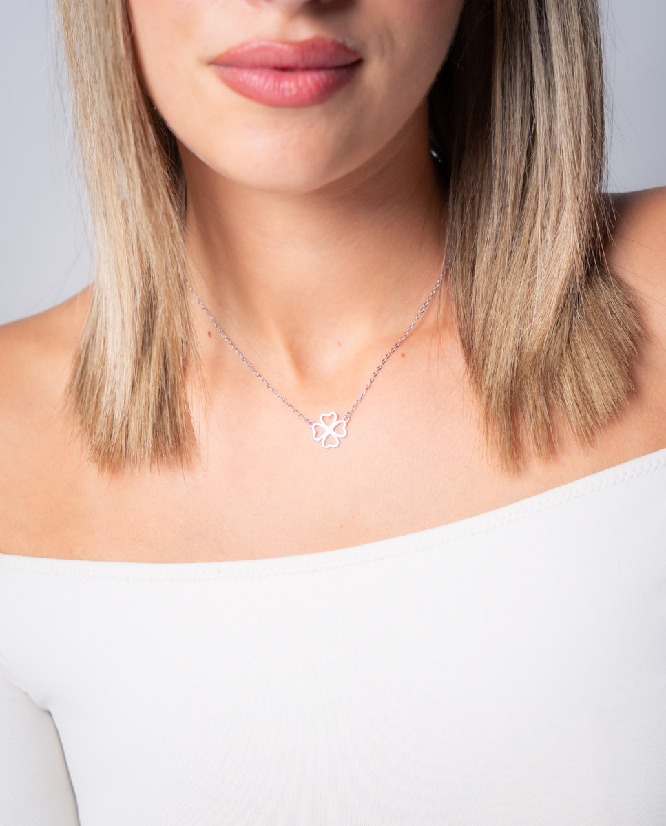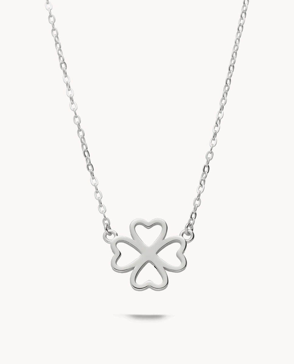 Collar trébol de corazones amor de plata de ley 925 bañado en rodio
