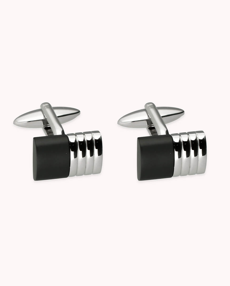 Gemelos de acero inoxidable con detalle IP negro y forma rectangular.
