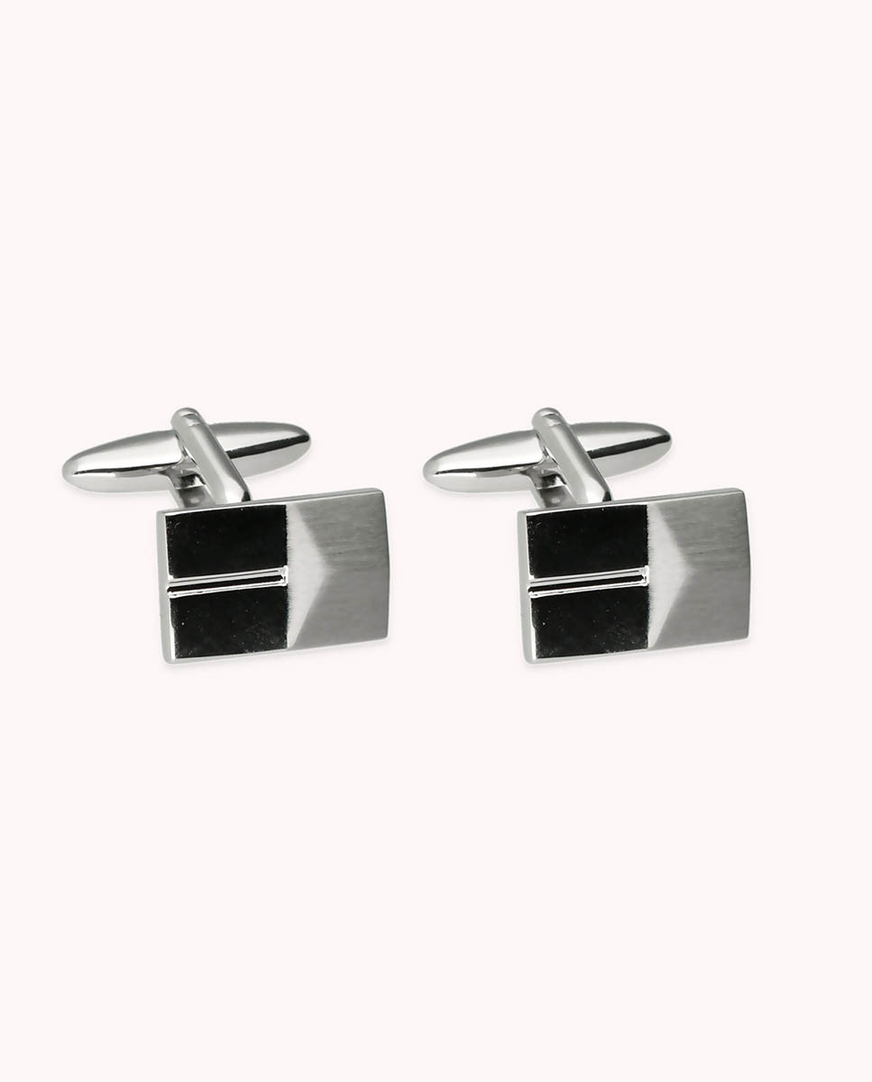 Gemelos de metal rodiado placa rectangular dos acabados rodiados