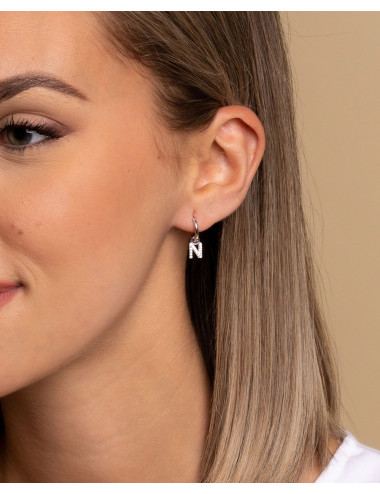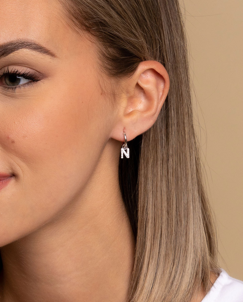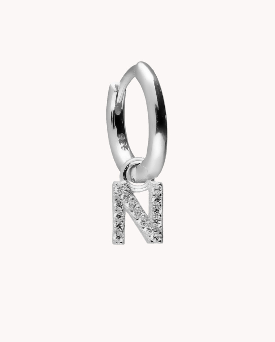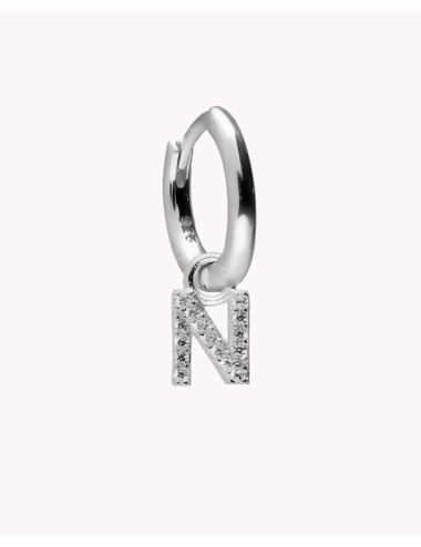 Pendiente de aro letra n de plata de ley 925 con circonitas individual
