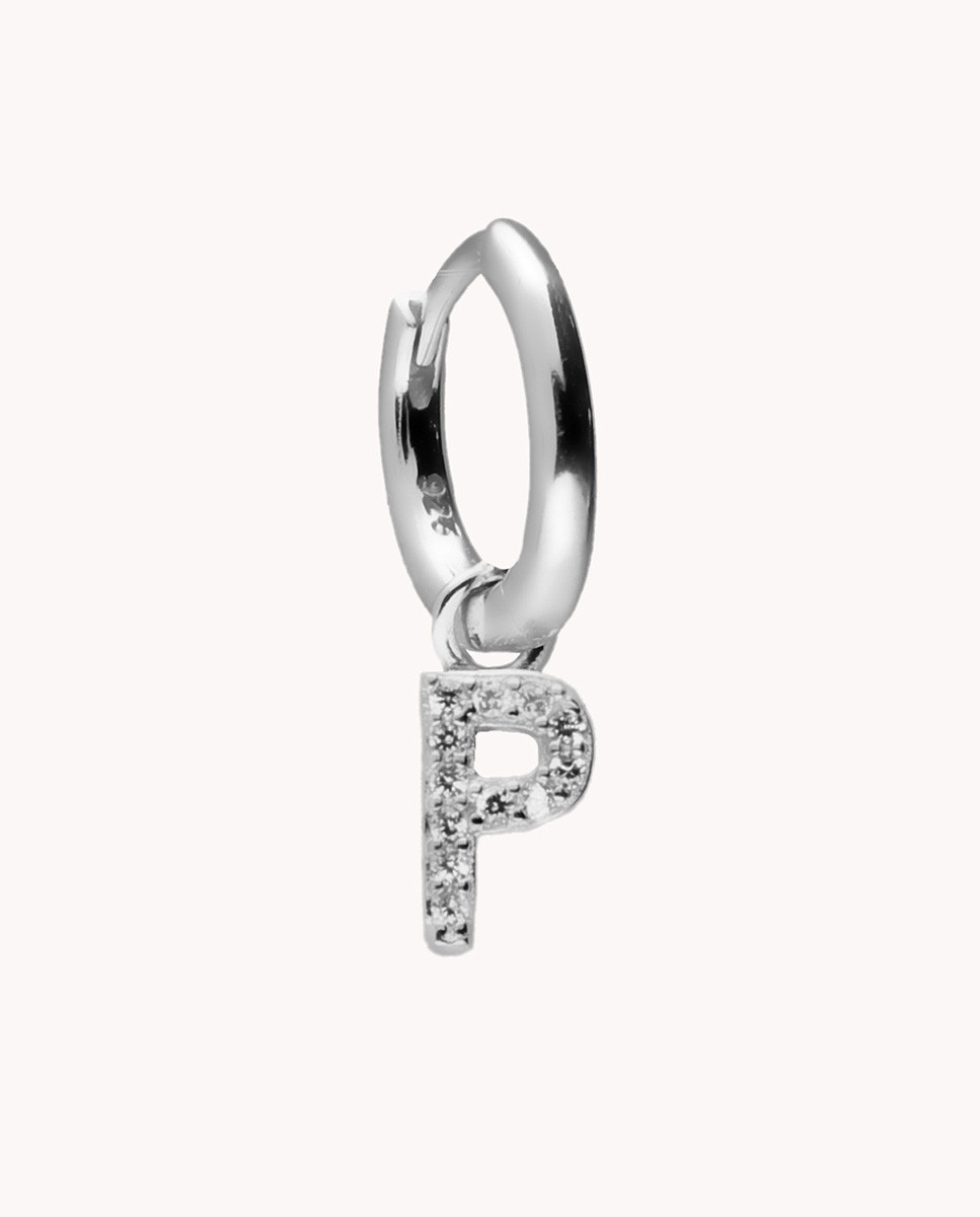 Pendiente de aro letra p de plata de ley 925 con circonitas individual