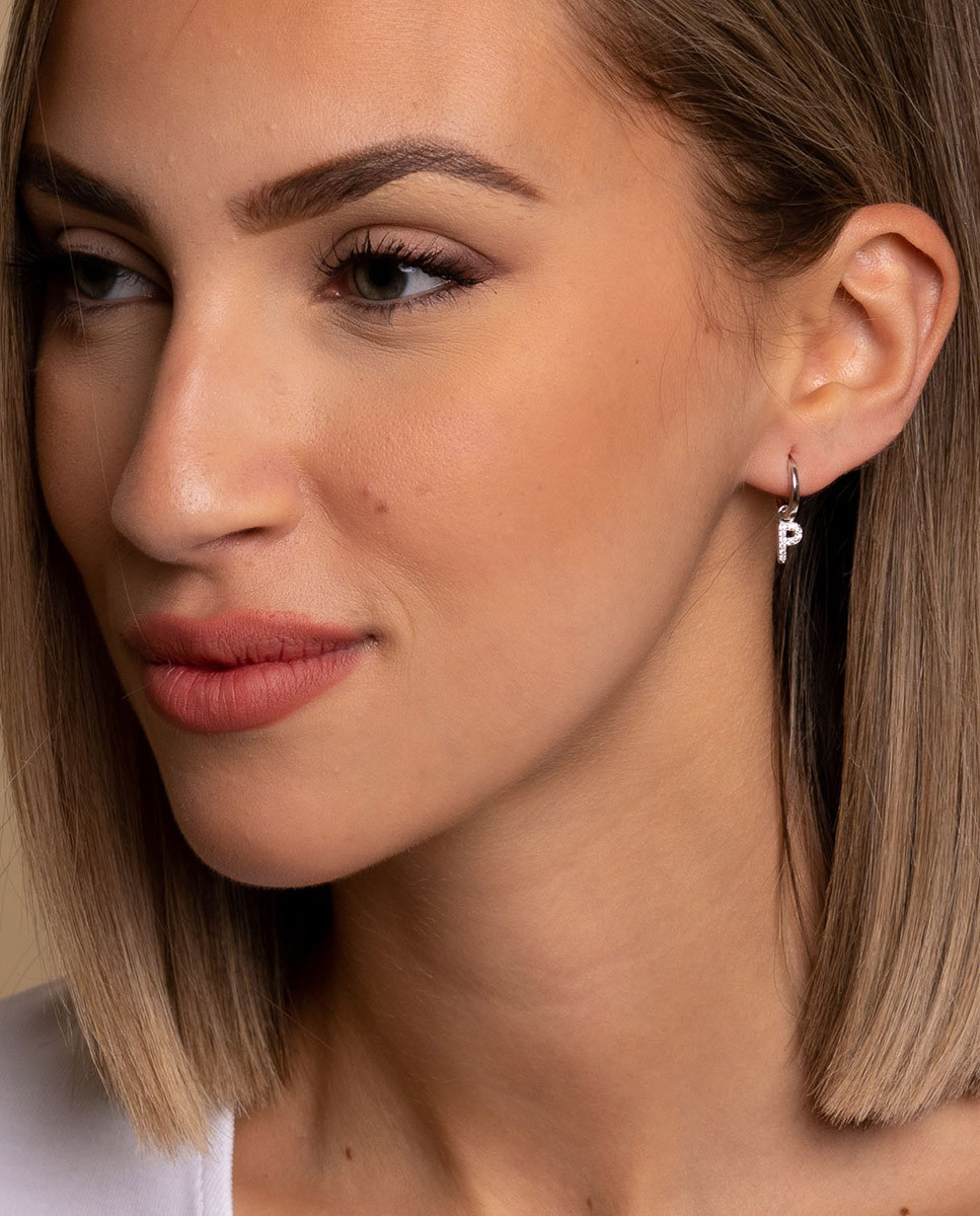 PENDIENTE DE ARO LETRA P DE PLATA DE LEY 925 CON CIRCONITAS INDIVIDUAL
