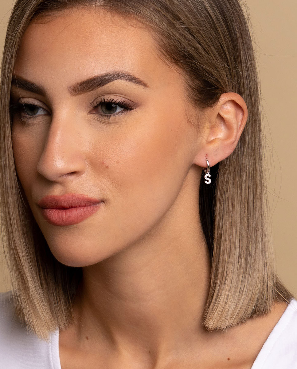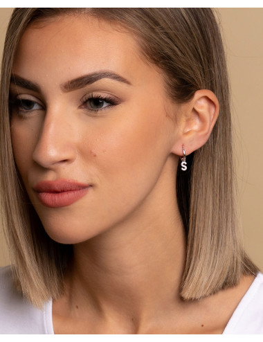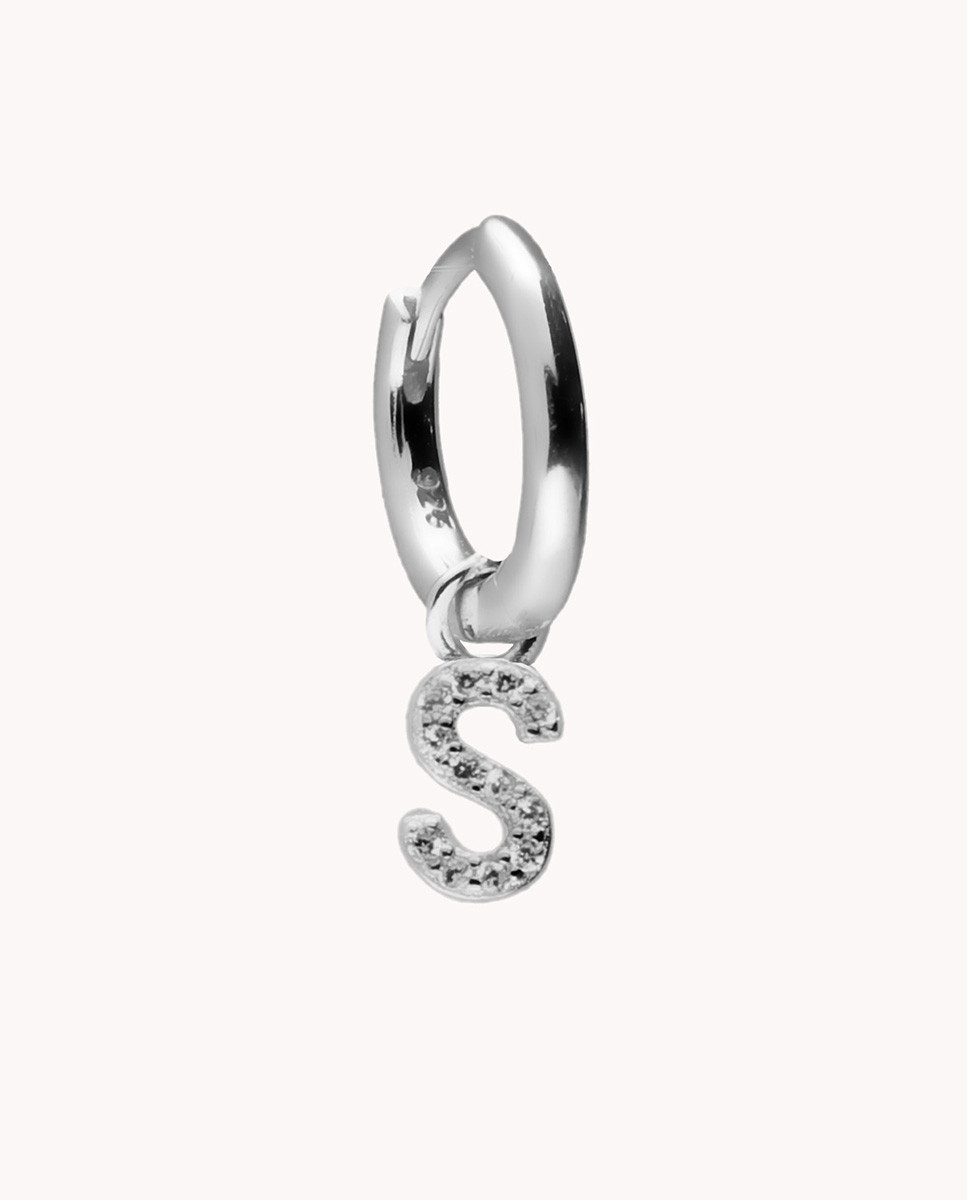 Pendiente de aro letra s de plata de ley 925 con circonitas individual