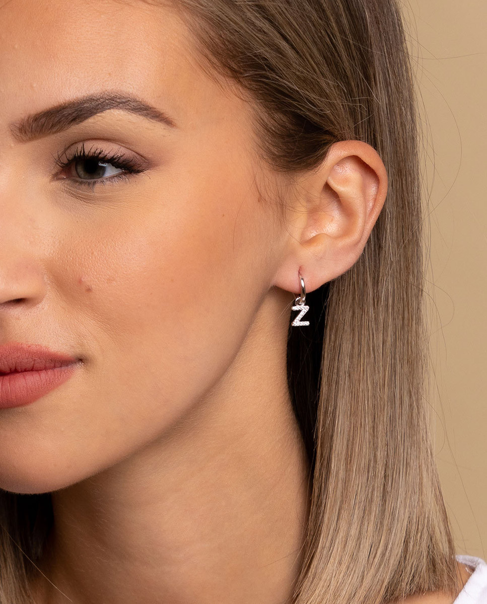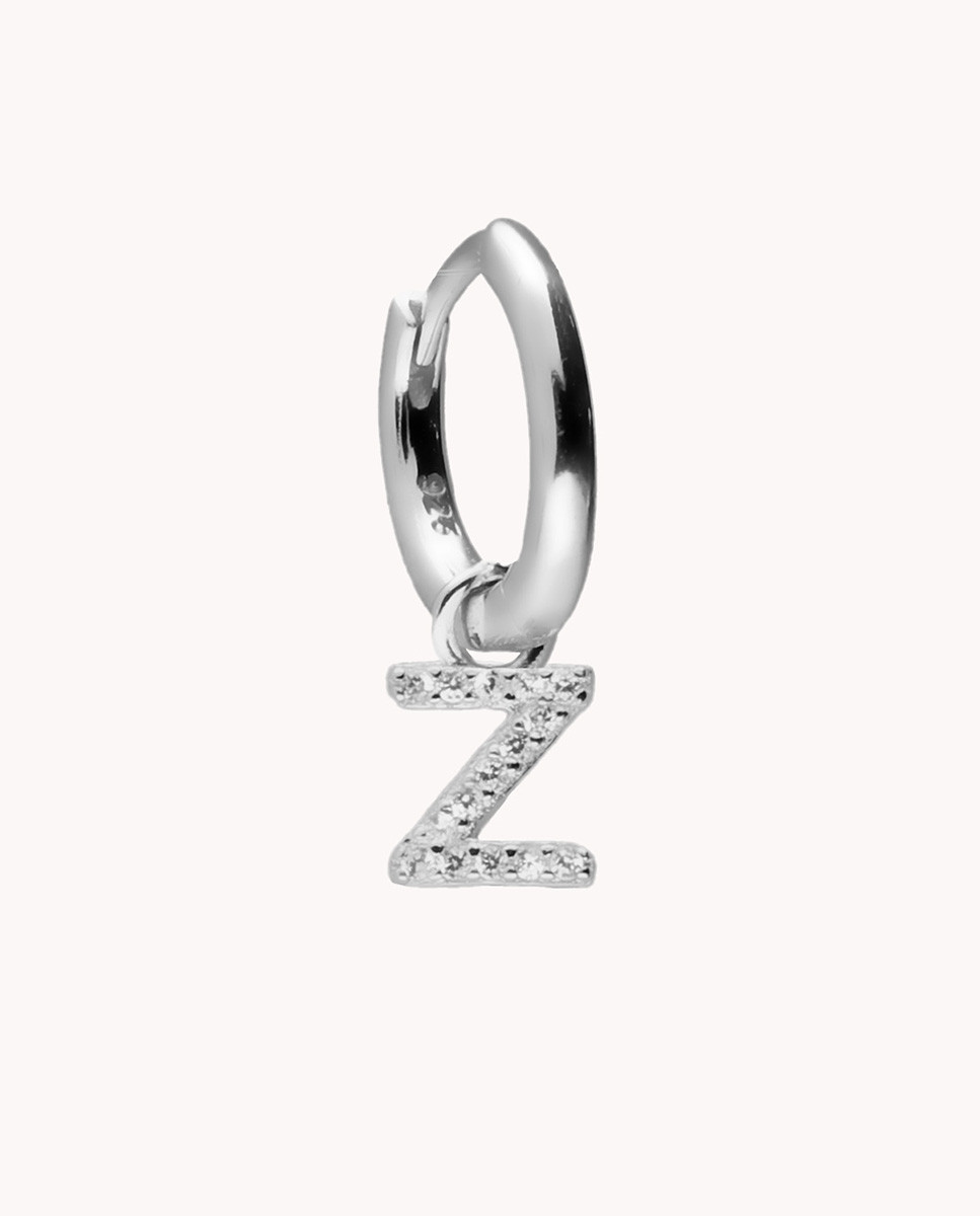 Pendiente de aro letra z de plata de ley 925 con circonitas individual