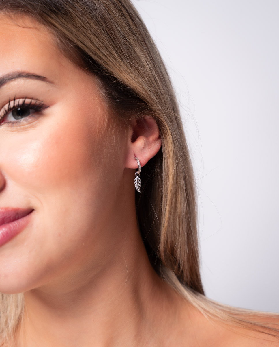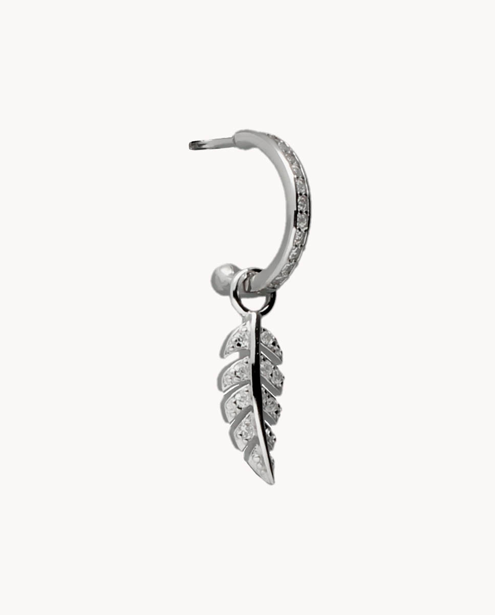 Pendiente individual de aro hoja brilli de plata de ley 925 bañada en rodio