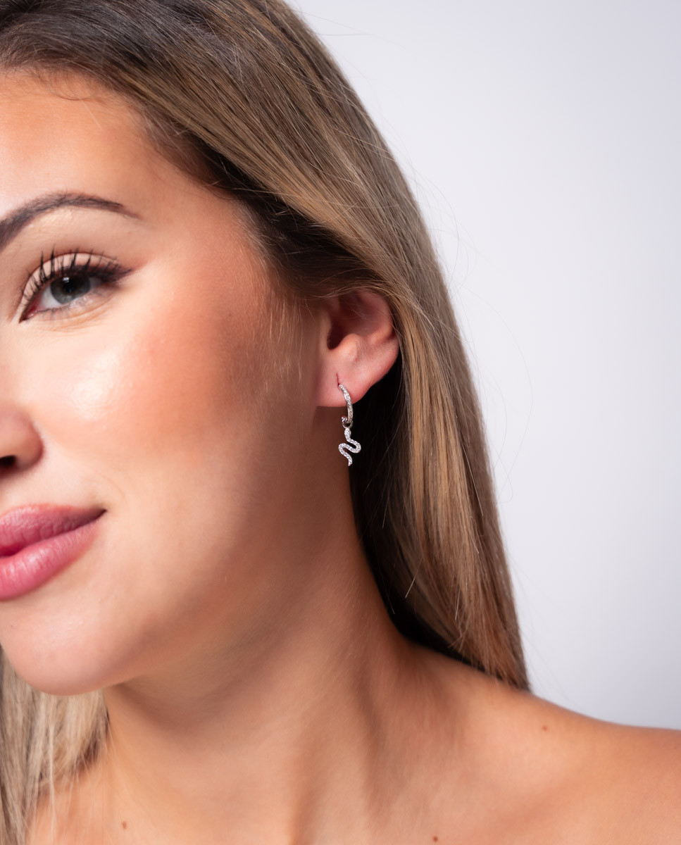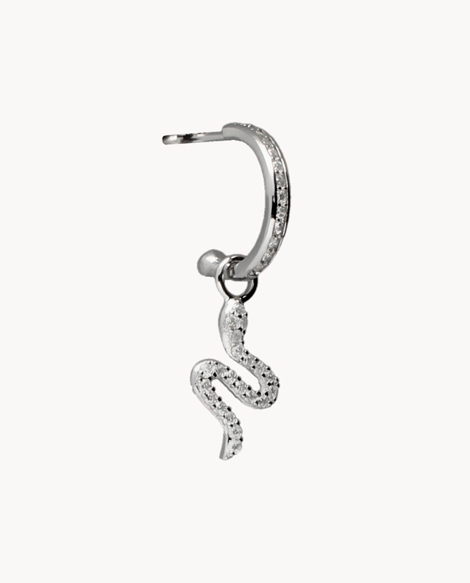Pendiente individual de aro silver serpiente de plata de ley 925 bañada en rodio
