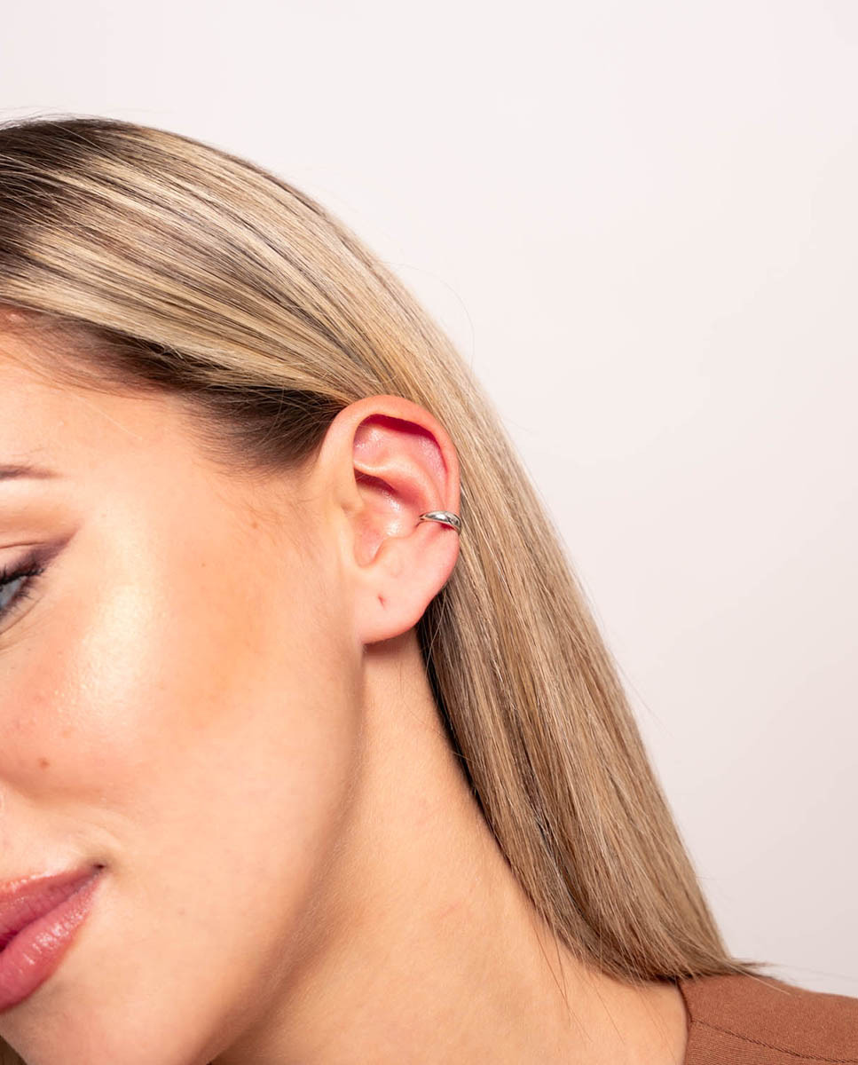 Pendiente individual ear cuff de plata de ley 925 bañada en rodio.