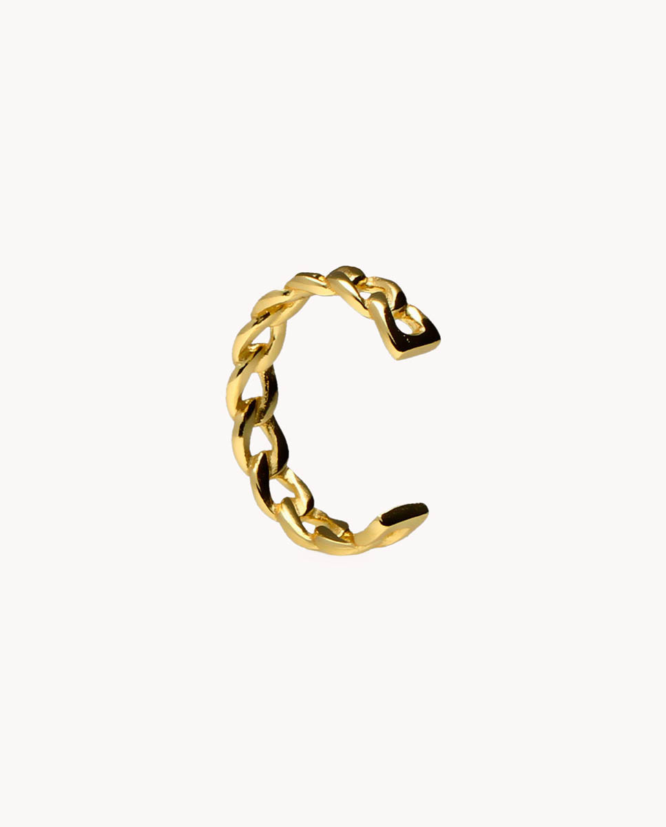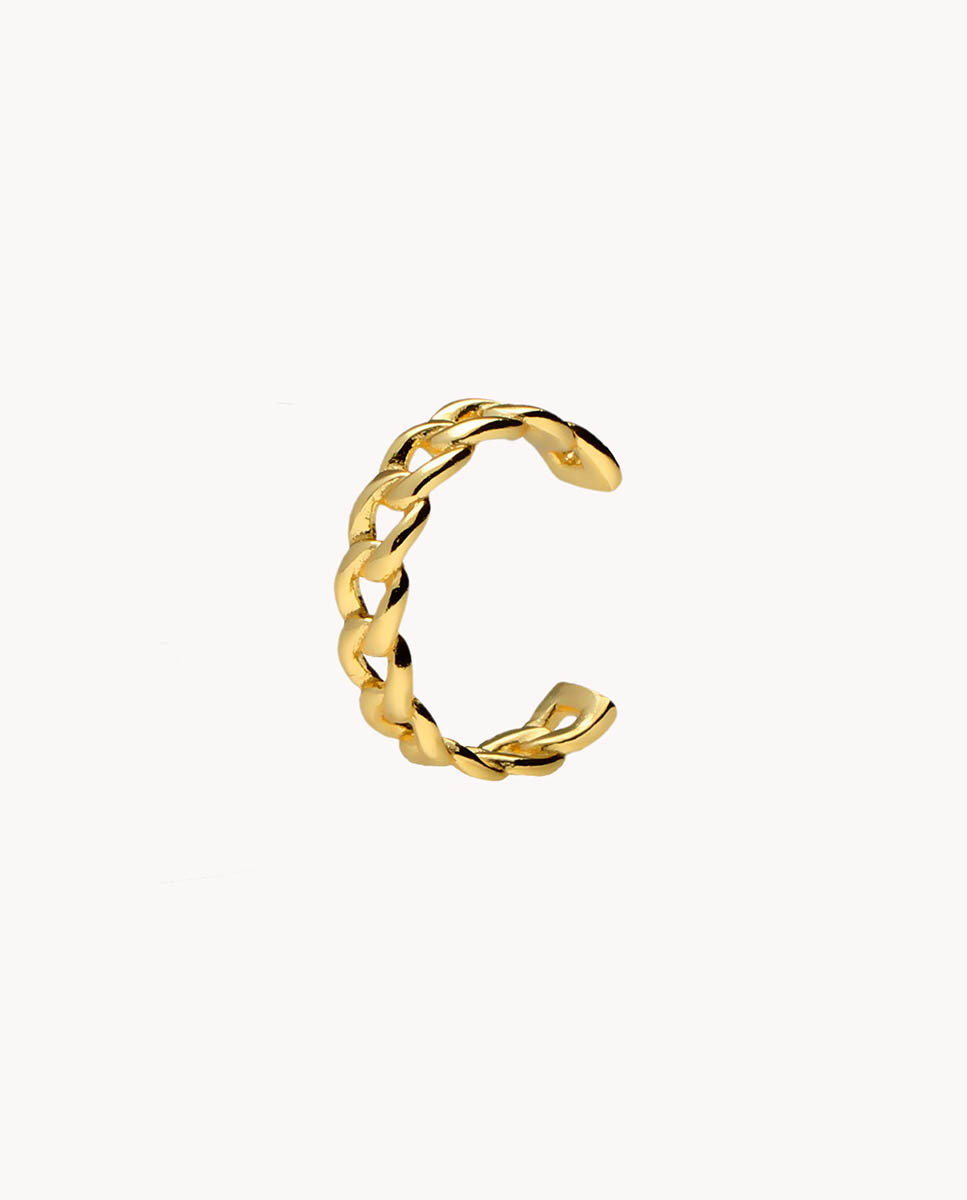 Pendiente individual ear cuff de plata de ley 925 bañada en oro 18K con eslabones.