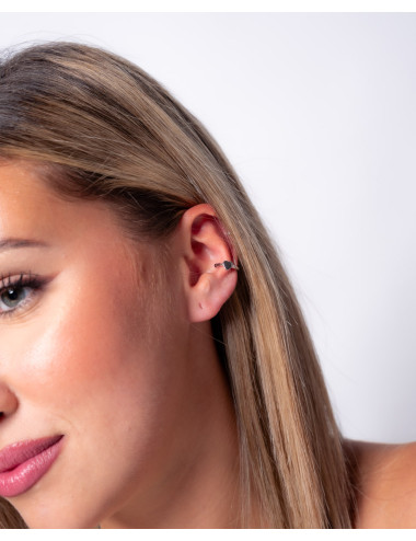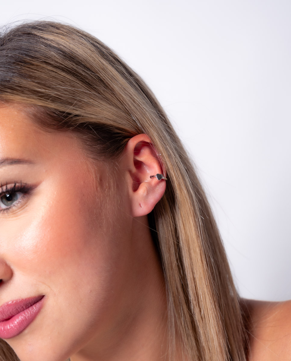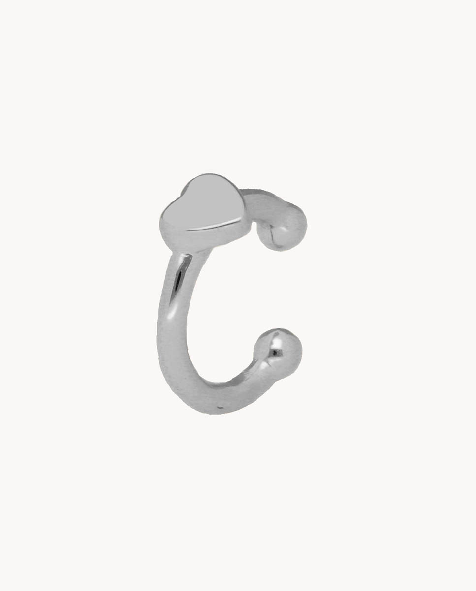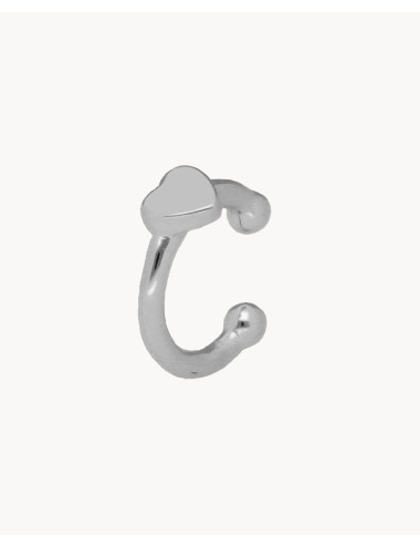 Pendiente individual ear cuff de plata de ley 925 bañado en rodio con motivo corazón.