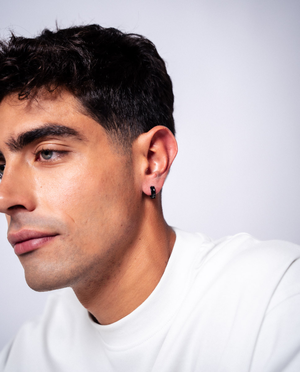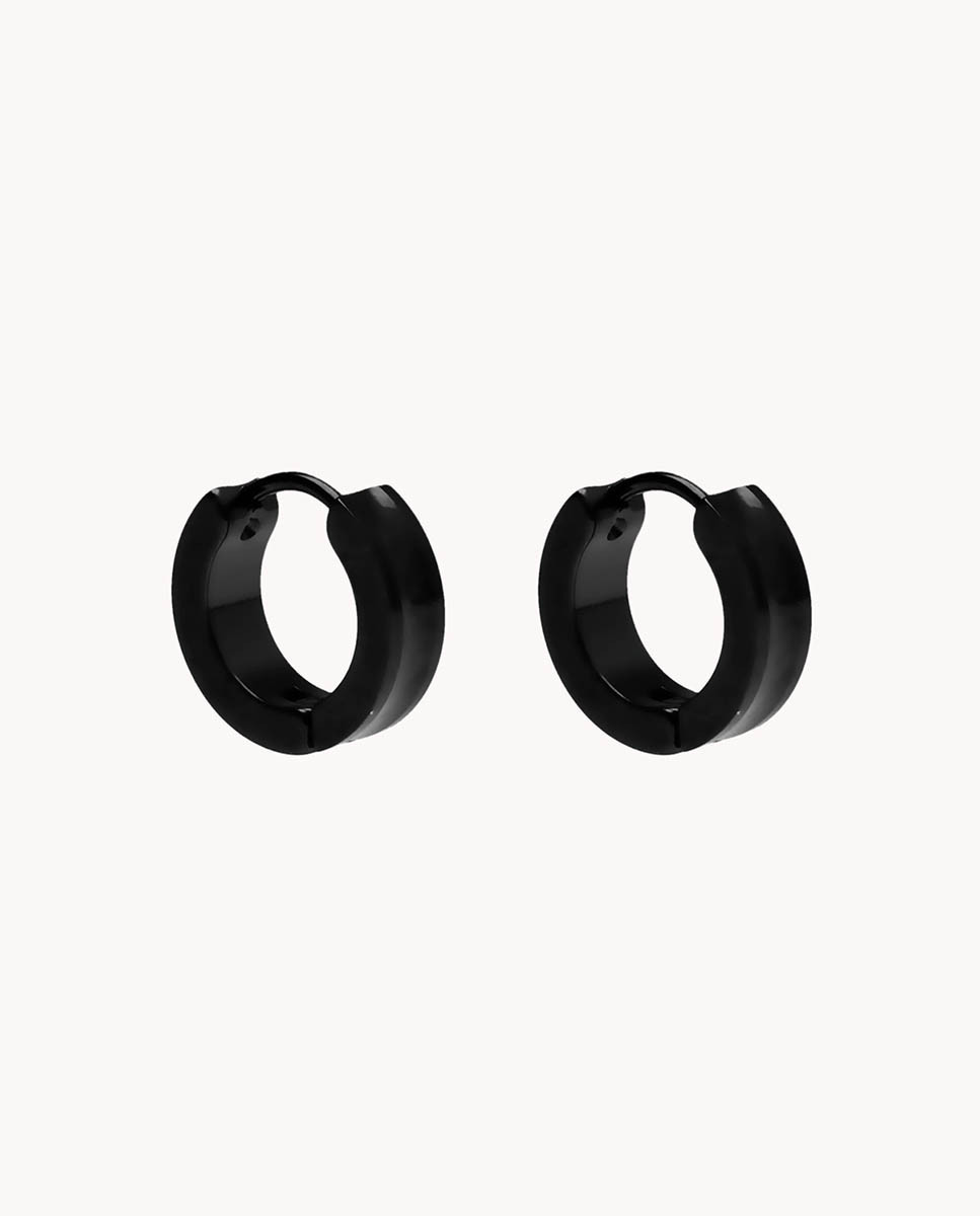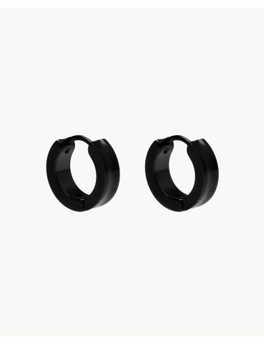 Pendientes de aro de acero inoxidable y acabado en IP negro, cierre africano. Diámetro 9 mm (interior), ancho 4 mm.