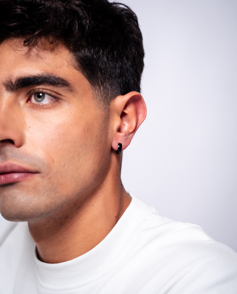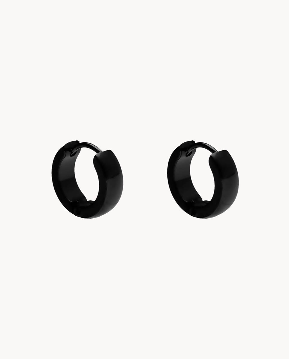 Pendientes de aro de acero inoxidable y acabado en IP negro, cierre africano. Diametro 9 mm (interior), ancho 4 mm.
