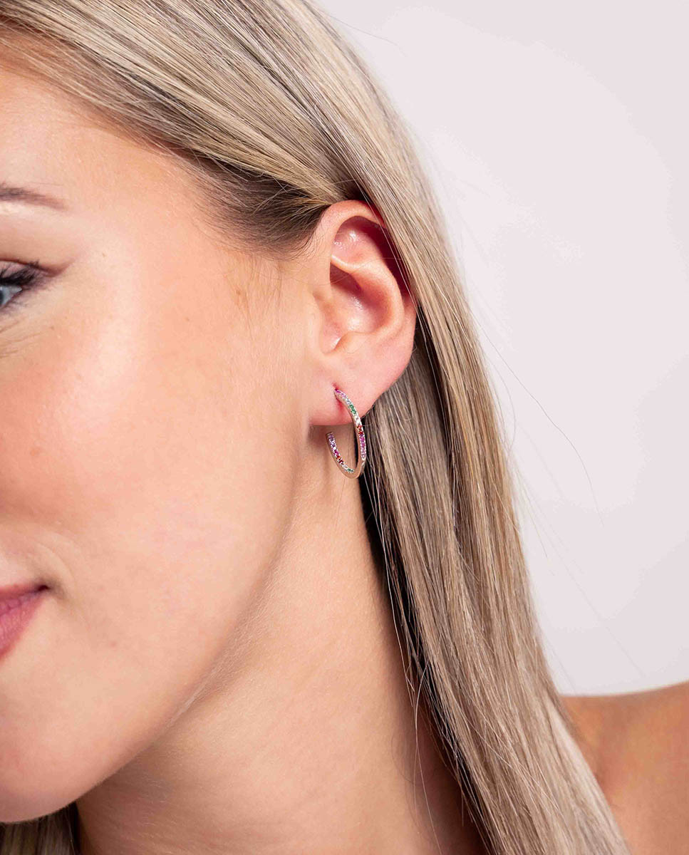 Pendientes de aro anahí mini de colores de plata de ley 925 bañada en rodio