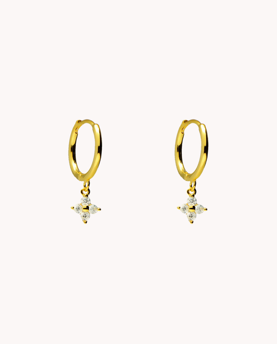 Pendientes de aro blanca flor de plata de ley 925 bañada en oro