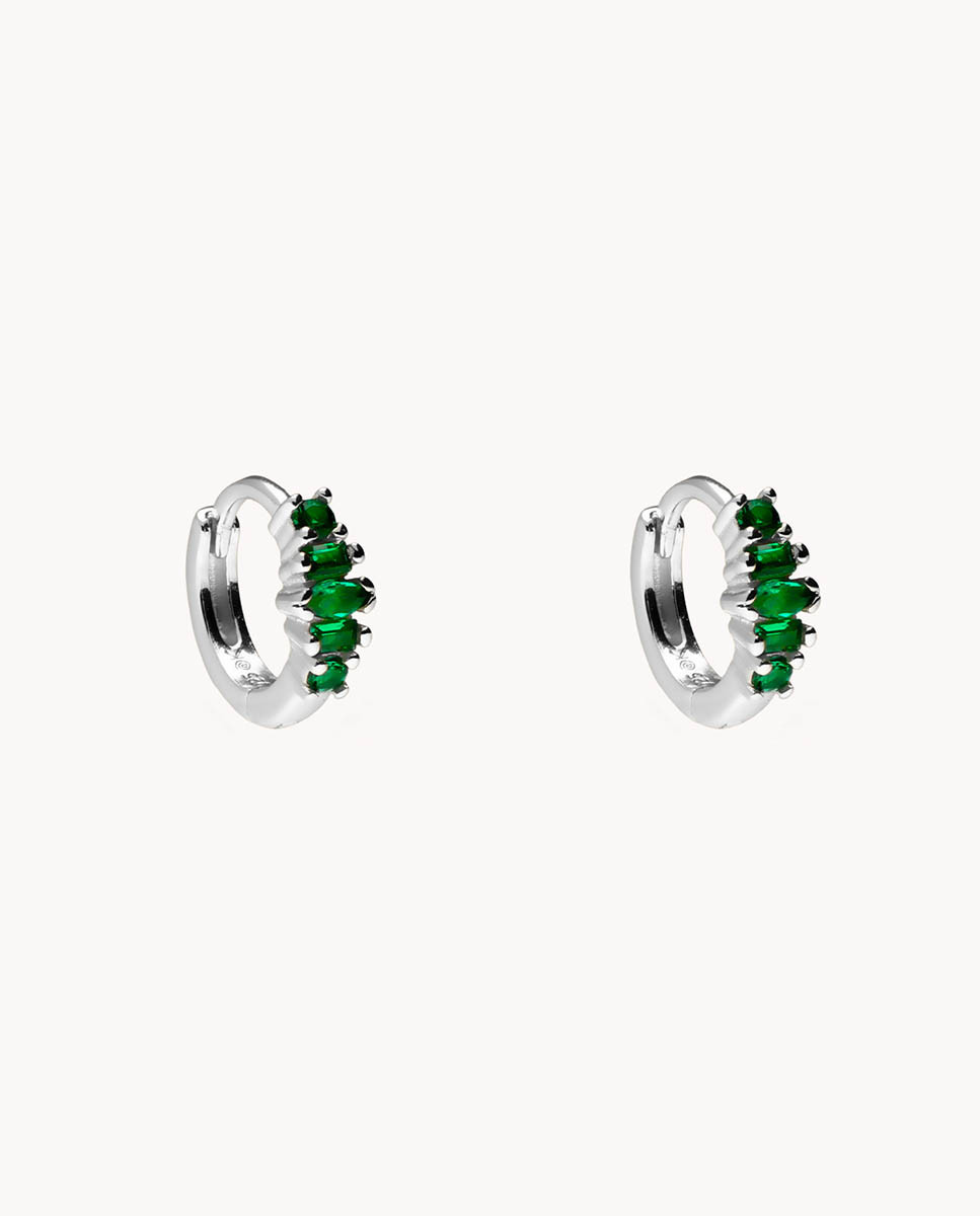 Pendientes de aro de plata de ley 925 bañada en rodio de 7,5 mm de diámetro interior y 2 mm de grosor con circonitas color verde esmeralda y cierre africano.