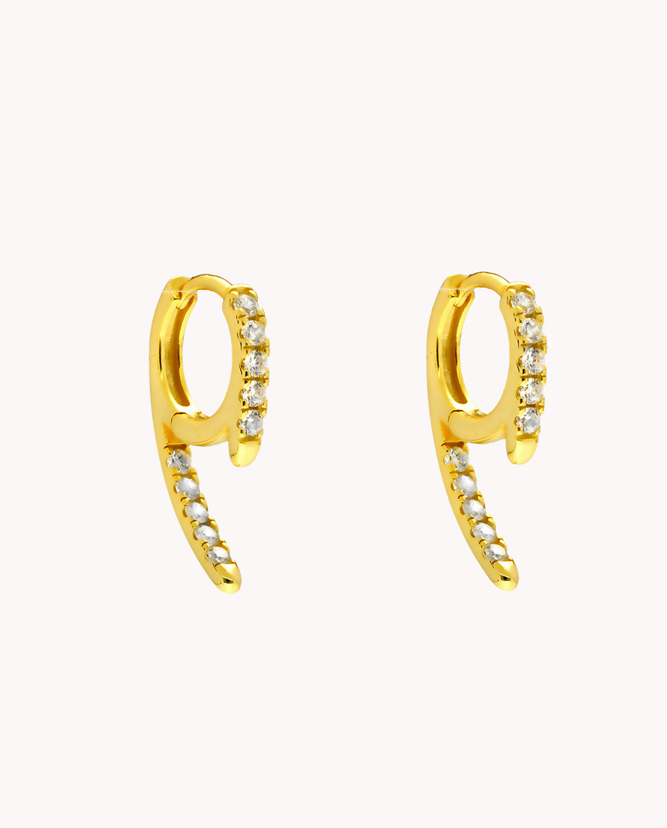 Pendientes de aro de plata de ley 925 bañada en oro 18K de 9 mm de diámetro interior con circonitas blancas y continuación de línea de 1 cms con circonitas blancas, cierre africano