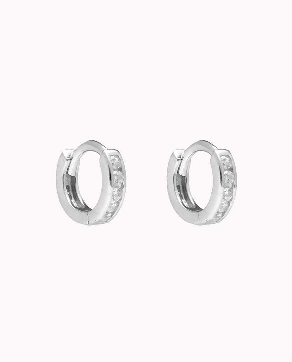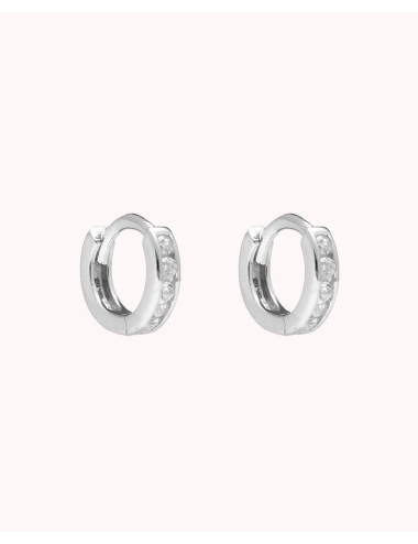 Pendientes de aro click s circonitas de plata de ley 925 bañada en rodio