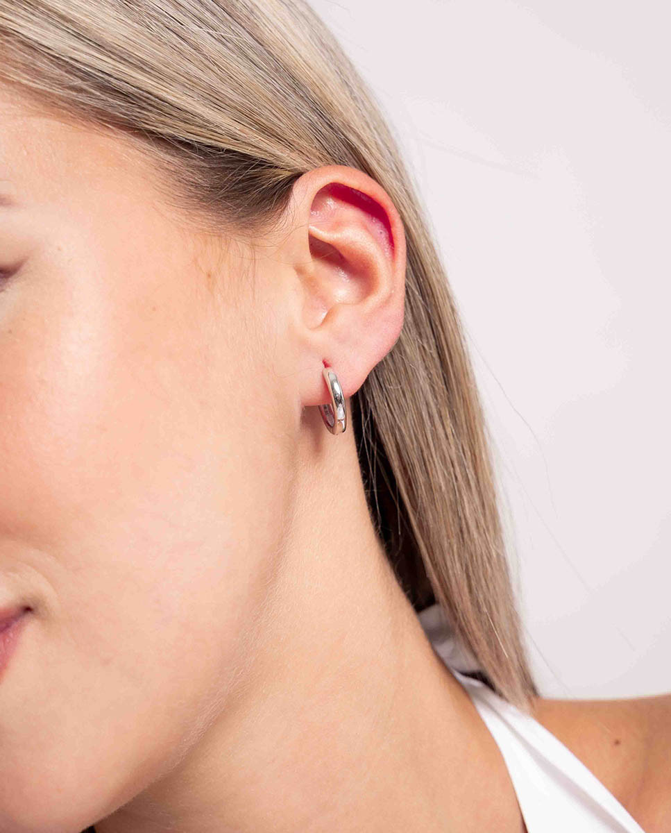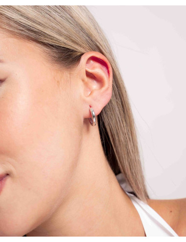 Pendientes de aro click tubo de plata de ley 925 bañada en rodio