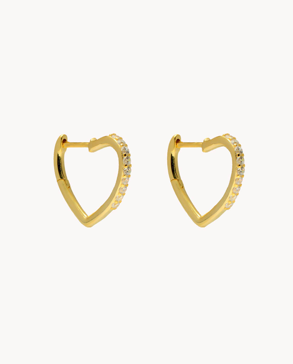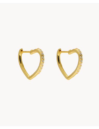 Pendientes de aro corazón forma kora de plata de ley 925 bañada en oro