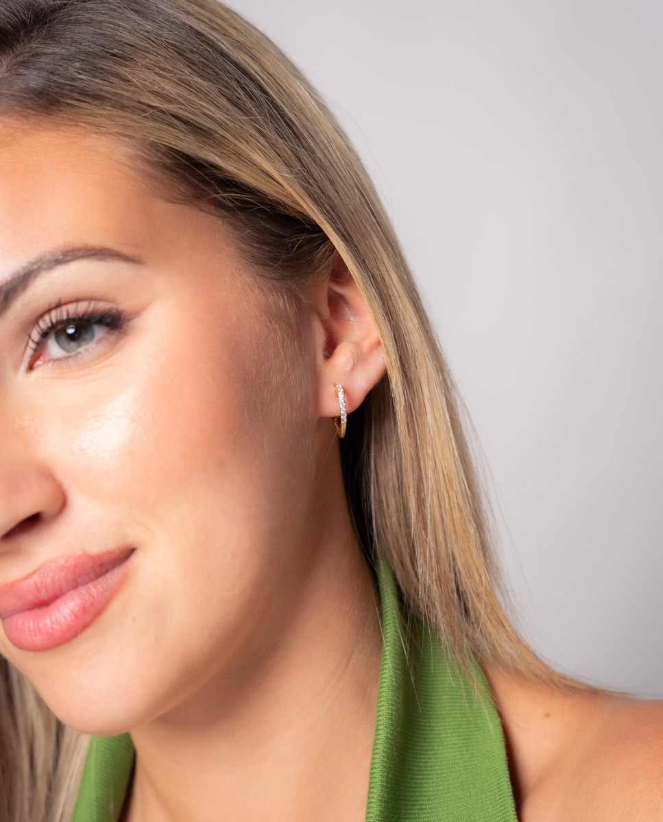 Pendientes de aro de plata de ley 925 bañados en oro con forma de corazón de 15 mm de diámetro (interior) y 1,5 mm de ancho, circonitas blancas y cierre africano.