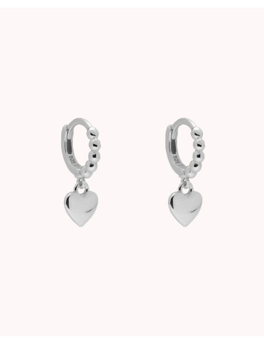 Pendientes de aro corazón mini bolas de plata de ley 925 bañada en rodio