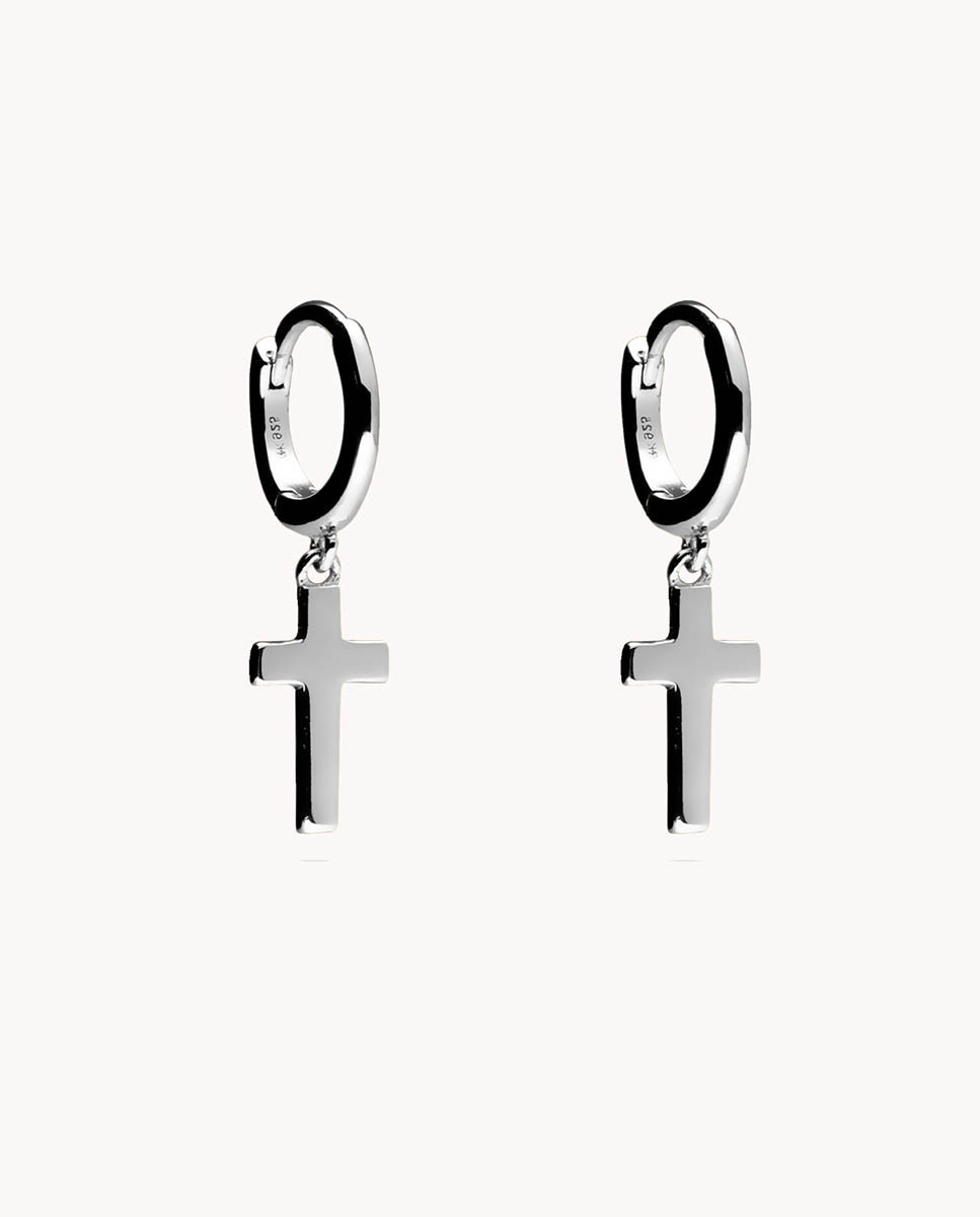 Pendientes de aro cross me de plata de ley 925 bañados en rodio con cruz