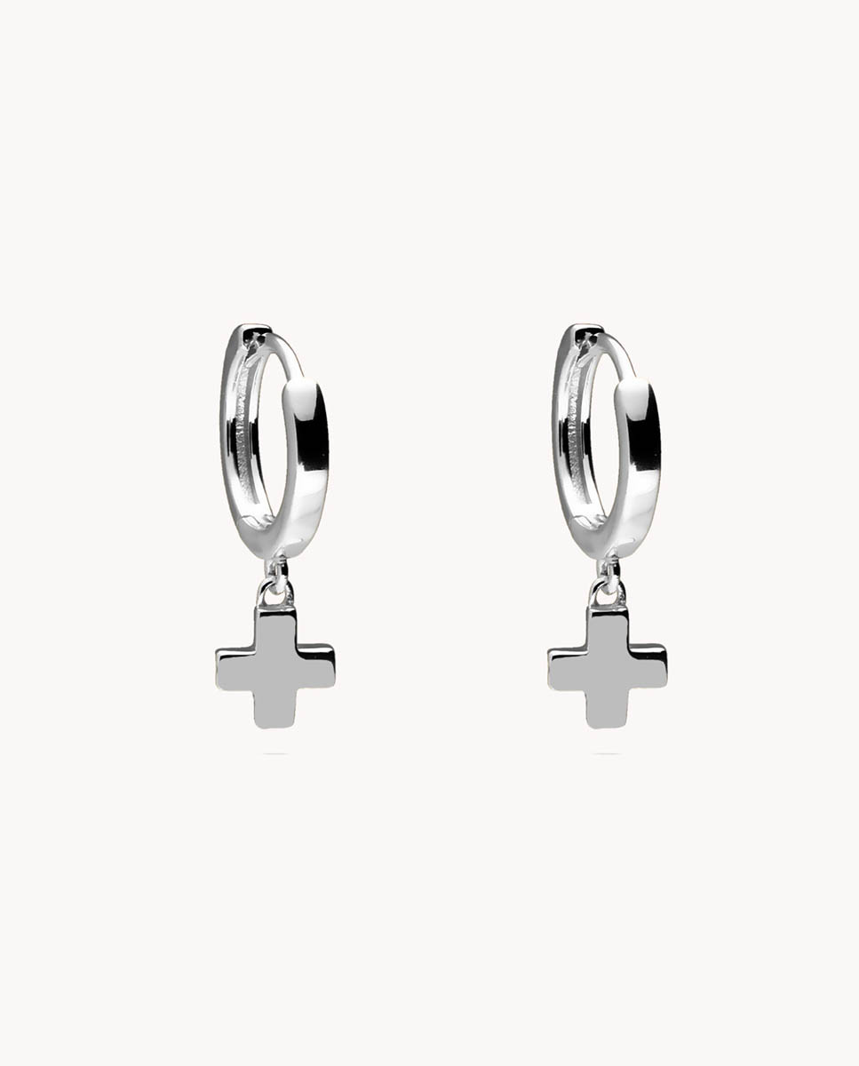Pendientes de aro cruz rock plata de plata de ley 925 bañados en rodio con cruz
