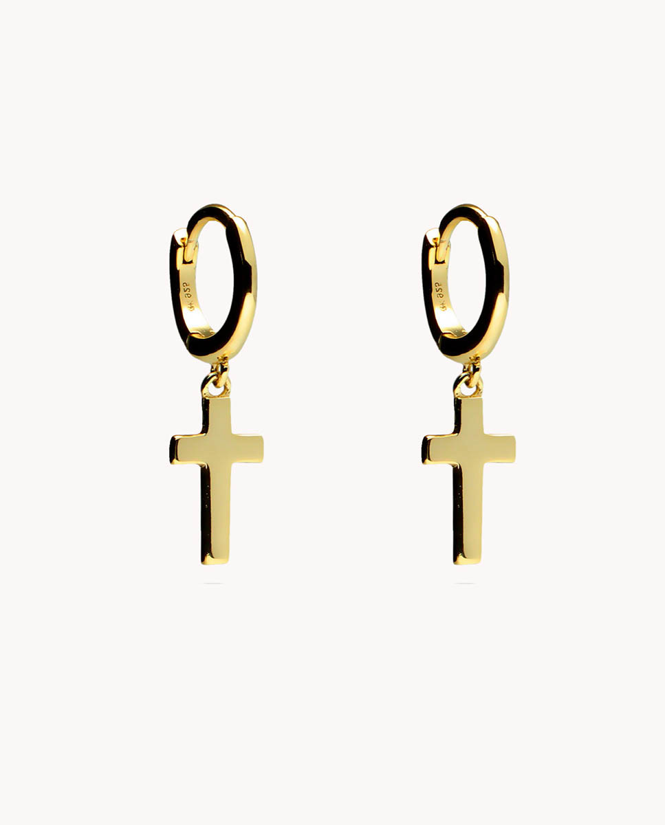 Pendientes de aro cruzados de plata de ley 925 bañados en oro con cruz