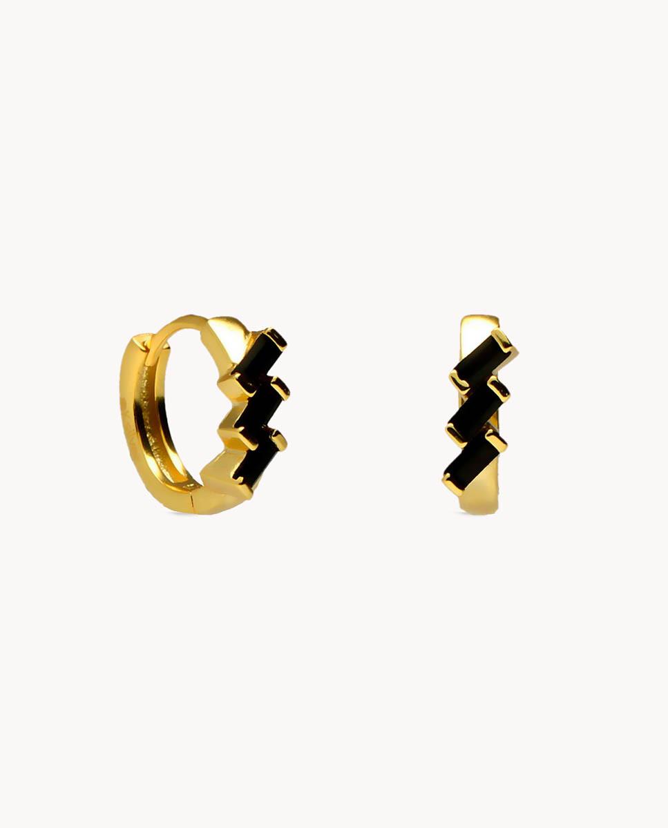 Pendientes de aro dark de plata de ley 925 bañados en oro con circonitas negras