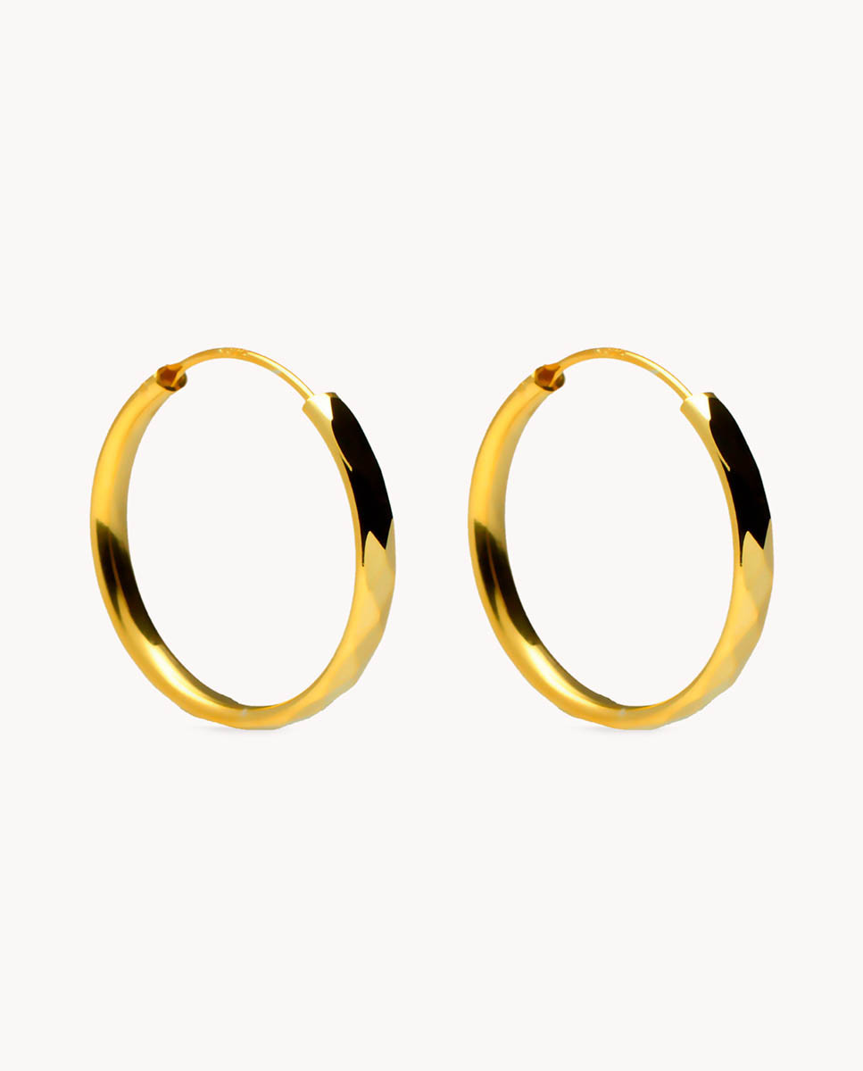 Pendientes de aro de plata de ley 925 bañada en oro de 20 mm de diámetro interior y 3 mm de ancho , con diseño de rombos y cierre africano.