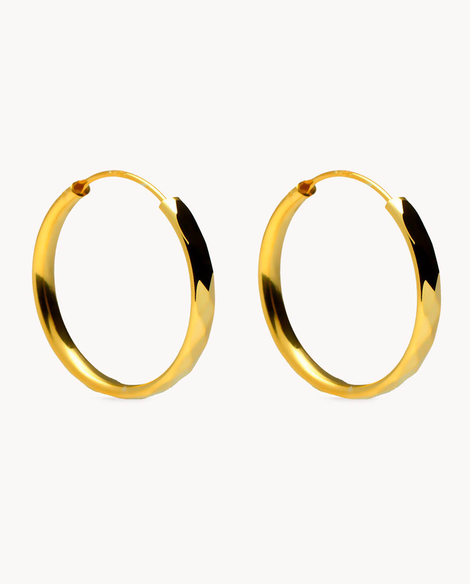 Pendientes de aro de plata de ley 925 bañada en oro de 30 mm de diámetro interior y 3 mm de ancho, con diseño de rombos y cierre africano.