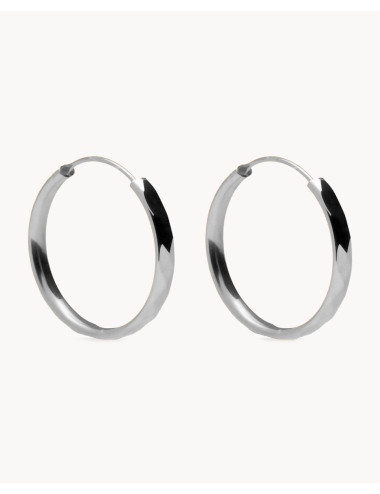 Pendientes de aro de plata de ley 925 bañada en rodio de 30 mm de diámetro interior y 3 mm de ancho, con diseño de rombos y cierre africano.