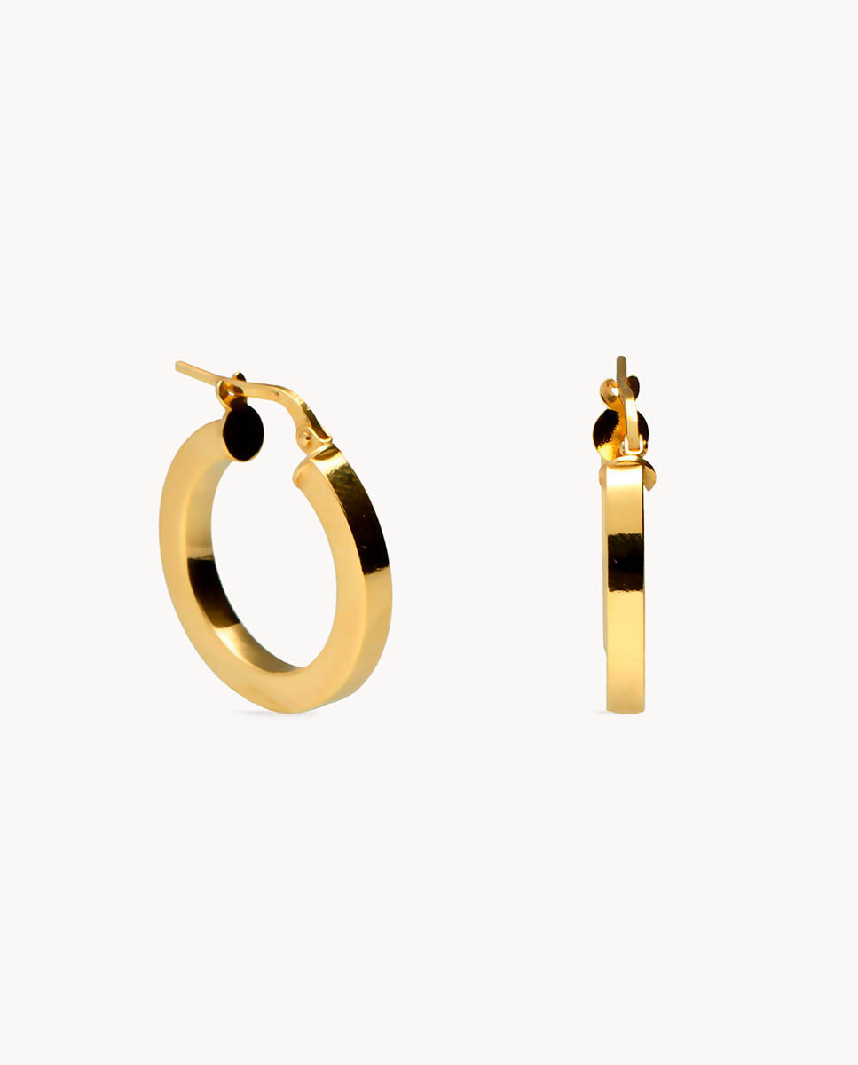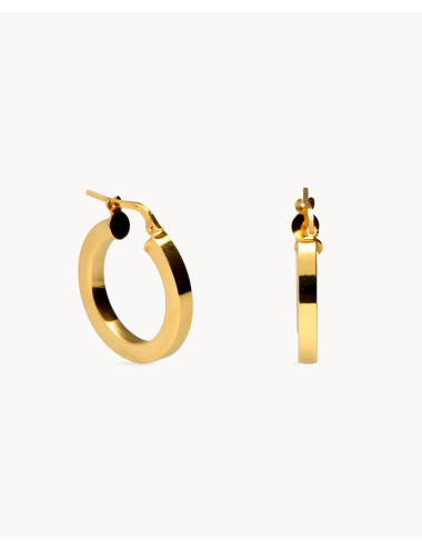 Pendientes de aro de plata de ley 925 bañados en oro de 15 mm de diámetro interior y 3 mm de ancho, cierre catalán.