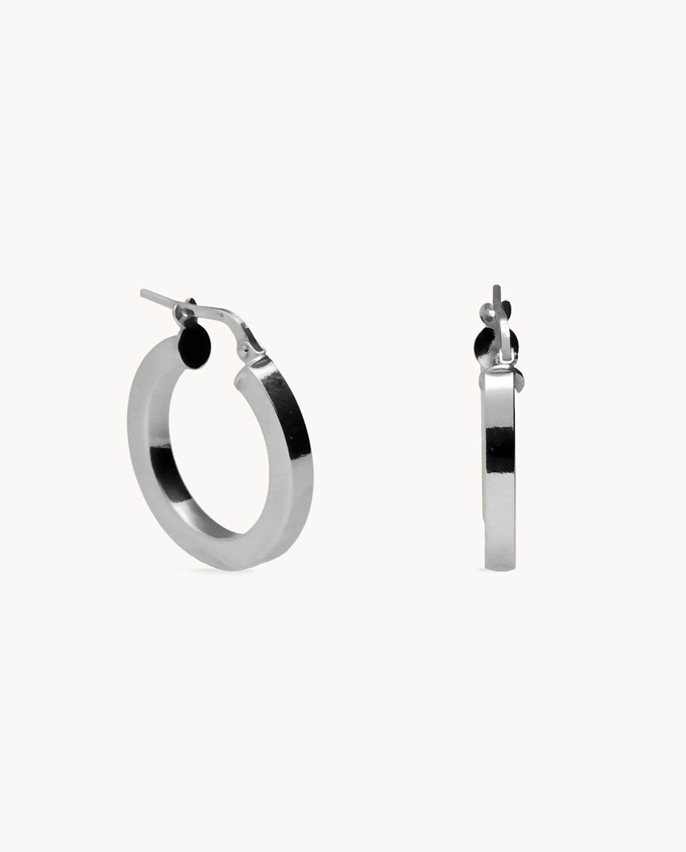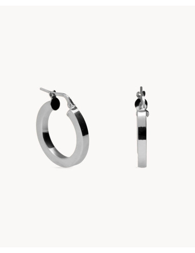 Pendientes de aro de plata de ley 925 bañados en rodio de 15 mm de diámetro interior y 3 mm de ancho, cierre catalán.