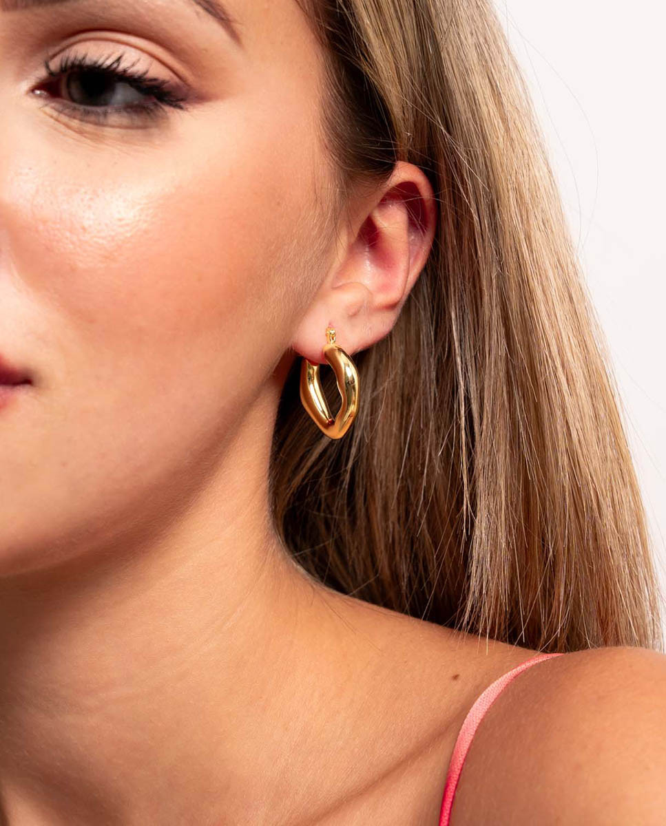 Pendientes de aro derretido de plata de ley 925 bañada en oro