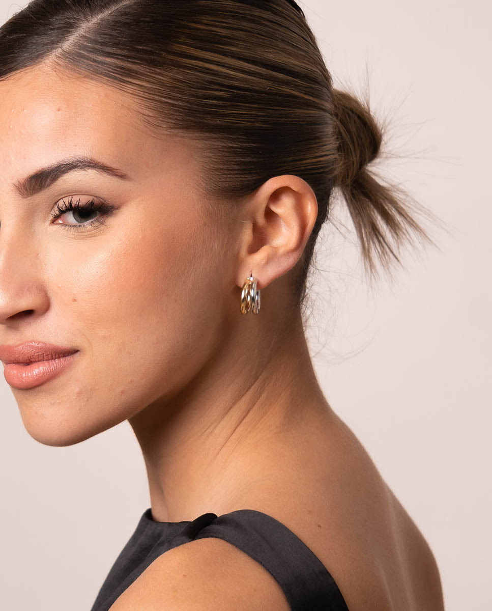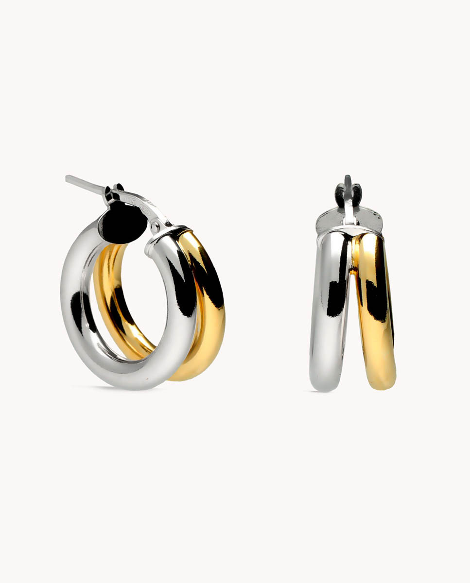 PENDIENTES DE ARO OK SILVER DÍA Y NOCHE DE PLATA DE LEY 925 BICOLOR