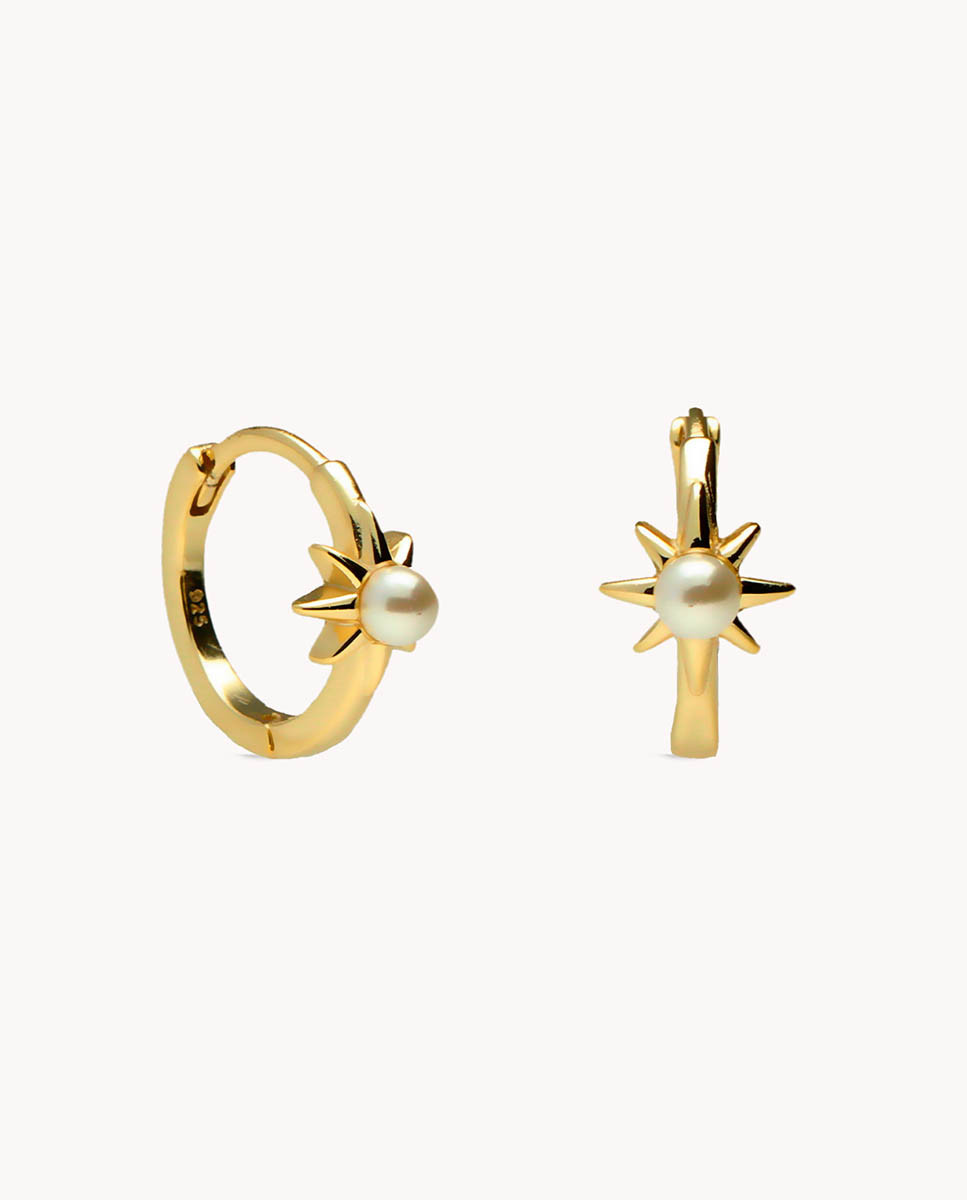 Pendientes de aro estrella perla de plata de ley 925 bañada en oro