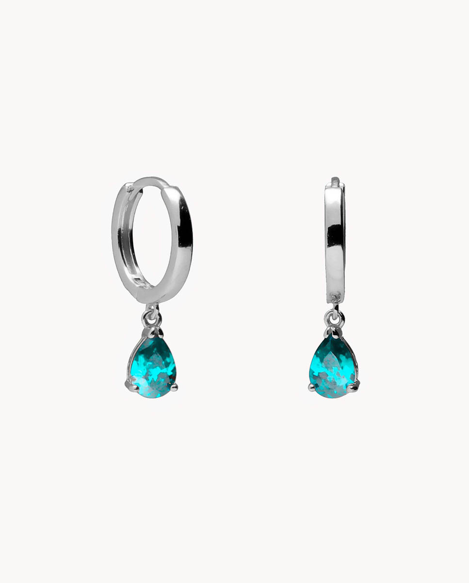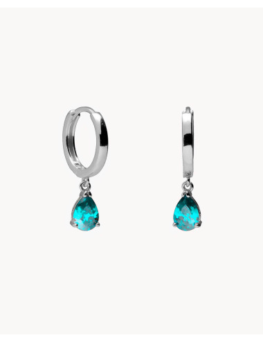 Pendientes de aro gota aguamarina de plata de ley 925 bañada en rodio
