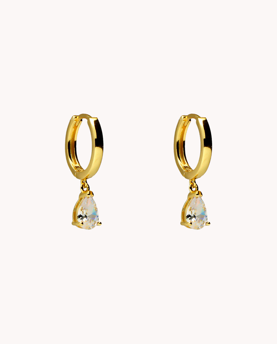 Pendientes de aro de 10 mm de diámetro con colgante de circonita blanca en forma de gota de 7 mm de alto con movimiento, plata de ley 925 bañada en oro y cierre africano.