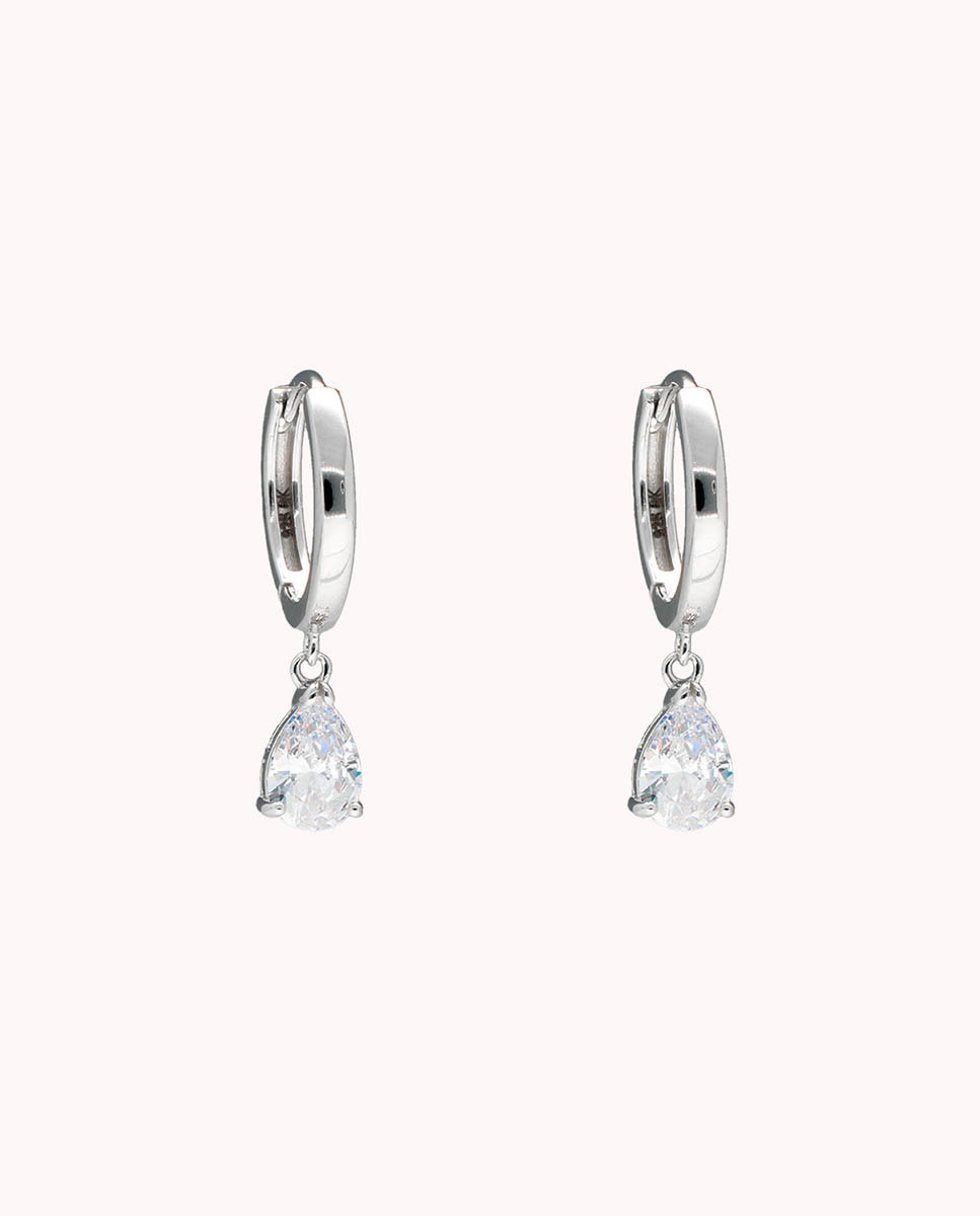 Pendientes de aro gota blanca de plata de ley 925 bañada en rodio