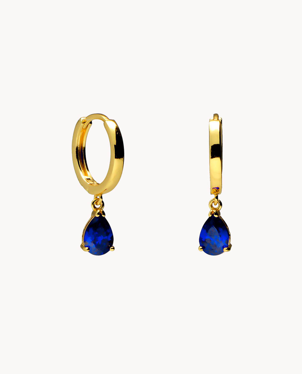 Pendientes de aro gota zafiro de plata de ley 925 bañada en oro